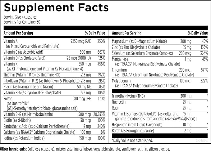 - Full-Spectrum Multivitamin - This powerhouse multivitamin supplies supportive nutrients not normally found in regular multis, such as delta and gamma tocotrienols, TMG, and fruit bioflavanoids.