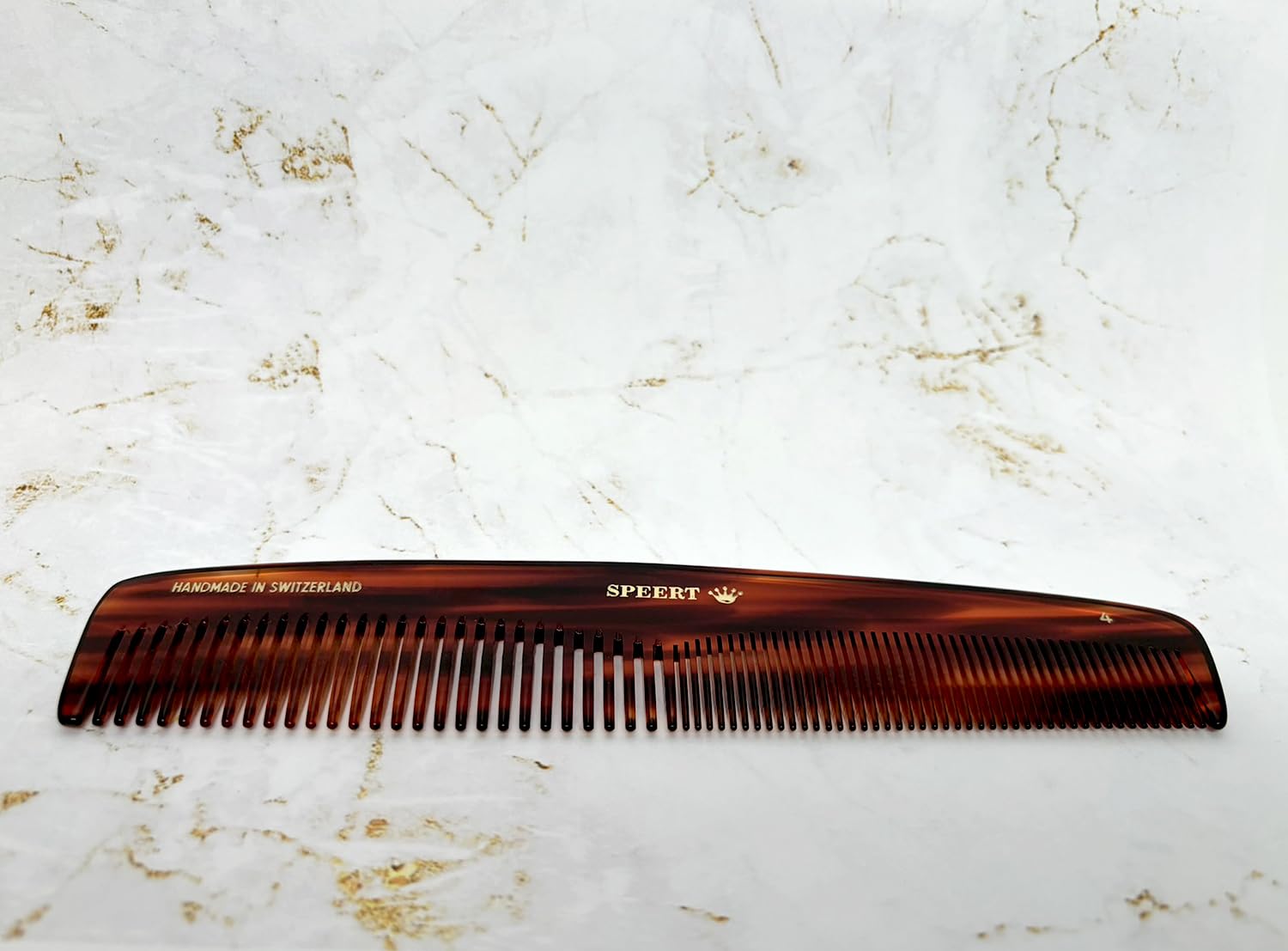 - Handmade Switzerland Craftsmanship: The Speert Tortoise Comb is a product of Swiss precision and dedication to craftsmanship. Handmade in Switzerland, each comb is a reflection of a commitment to durability, embodying the meticulous attention to detail that Swiss products are renowned for. This commitment ensures a grooming tool that not only meets the functional needs of hair care but also stands as a durable, long-lasting accessory in your collection.