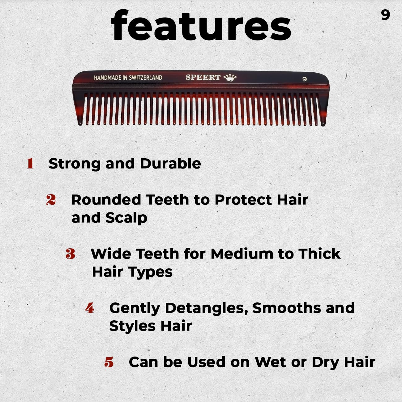 - Handmade Switzerland Craftsmanship: The Speert Tortoise Comb is a product of Swiss precision and dedication to craftsmanship. Handmade in Switzerland, each comb is a reflection of a commitment to durability, embodying the meticulous attention to detail that Swiss products are renowned for. This commitment ensures a grooming tool that not only meets the functional needs of hair care but also stands as a durable, long-lasting accessory in your collection.
