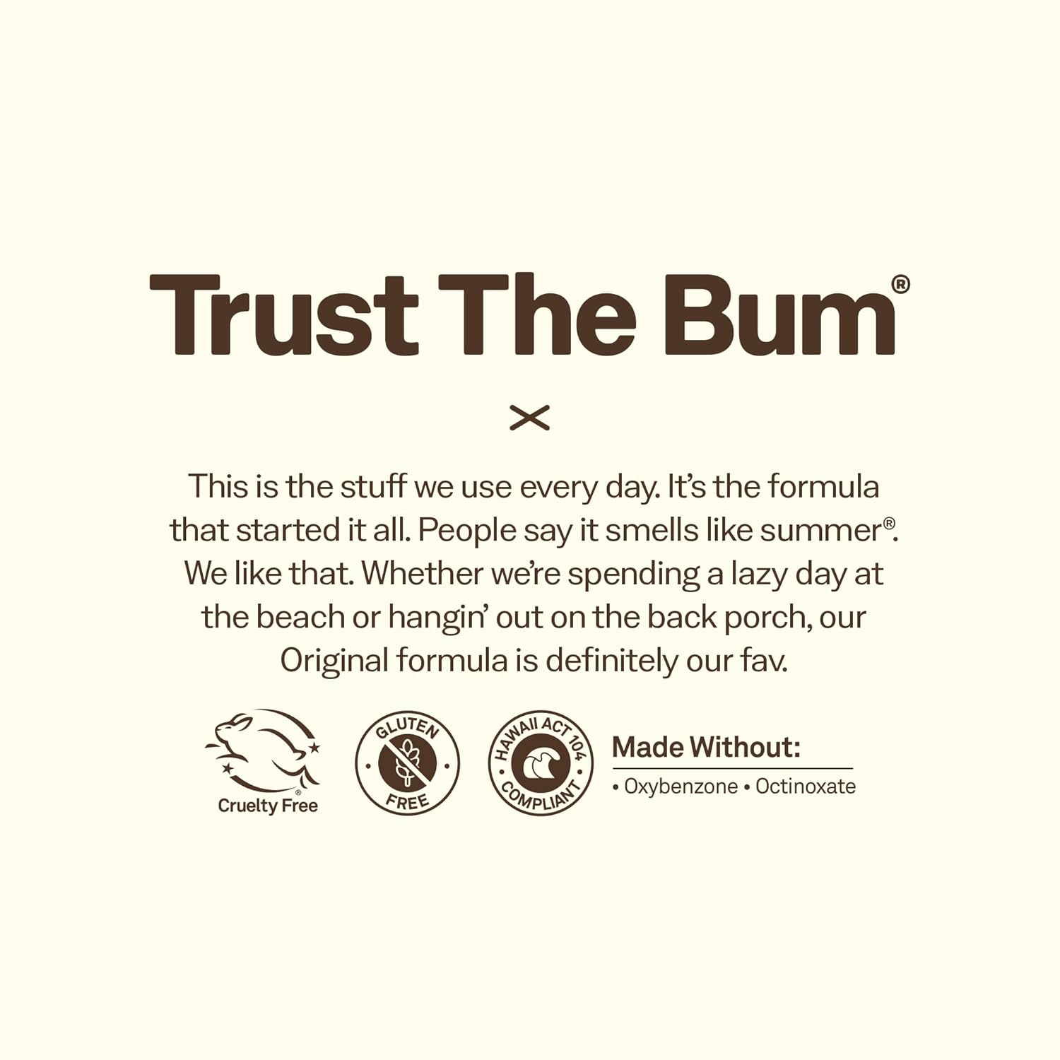 - TRUST THE BUM. What does that mean? It means trust us, the ones who live on the beach and need products that work on the most intense days in the sun. The simple truth is, when you make products to protect the ones you love, you make 'em better.