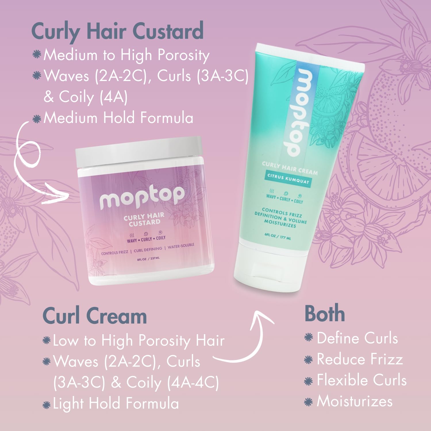 - CURL MOISTURIZER WITH FRIZZ CONTROL: MopTop Curl Custard is a moisturizing and lightweight hair gel designed to hydrate and soften curls with frizz control.
