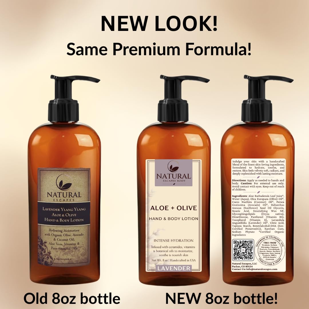 Natural Escapes Lavender Body Lotion for Dry Sensitive Skin, Eczema Relief Moisturizer with Aloe Vera, Olive Oil, Ceramides, Vitamin B5 and E, Hand and Body Cream for Women and Men, 8oz