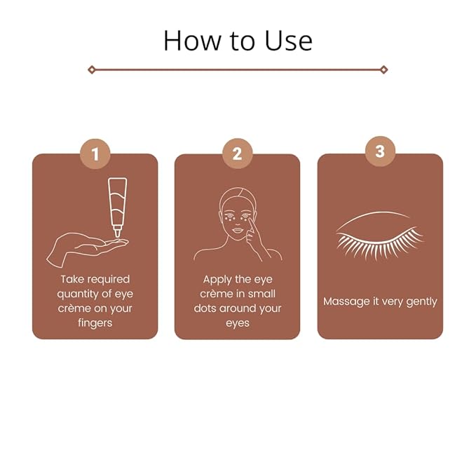 - 100% ORGANIC INGREDIENTS: Coffee Oil – Critically extracted Coffee Oil helps in diminishing dark circles & alleviating under eye bags. Grape Seed Oil – The nourishing Grape Seed Oil helps in hydrating and smoothening the delicate eye skin. We only use Dermatologist tested and approved ingredients which work for all skin types. FREE from Parabens, Paraffins, Silicone, PEG, SLS, Alcohol, Synthetic Colors, and Fragrances.