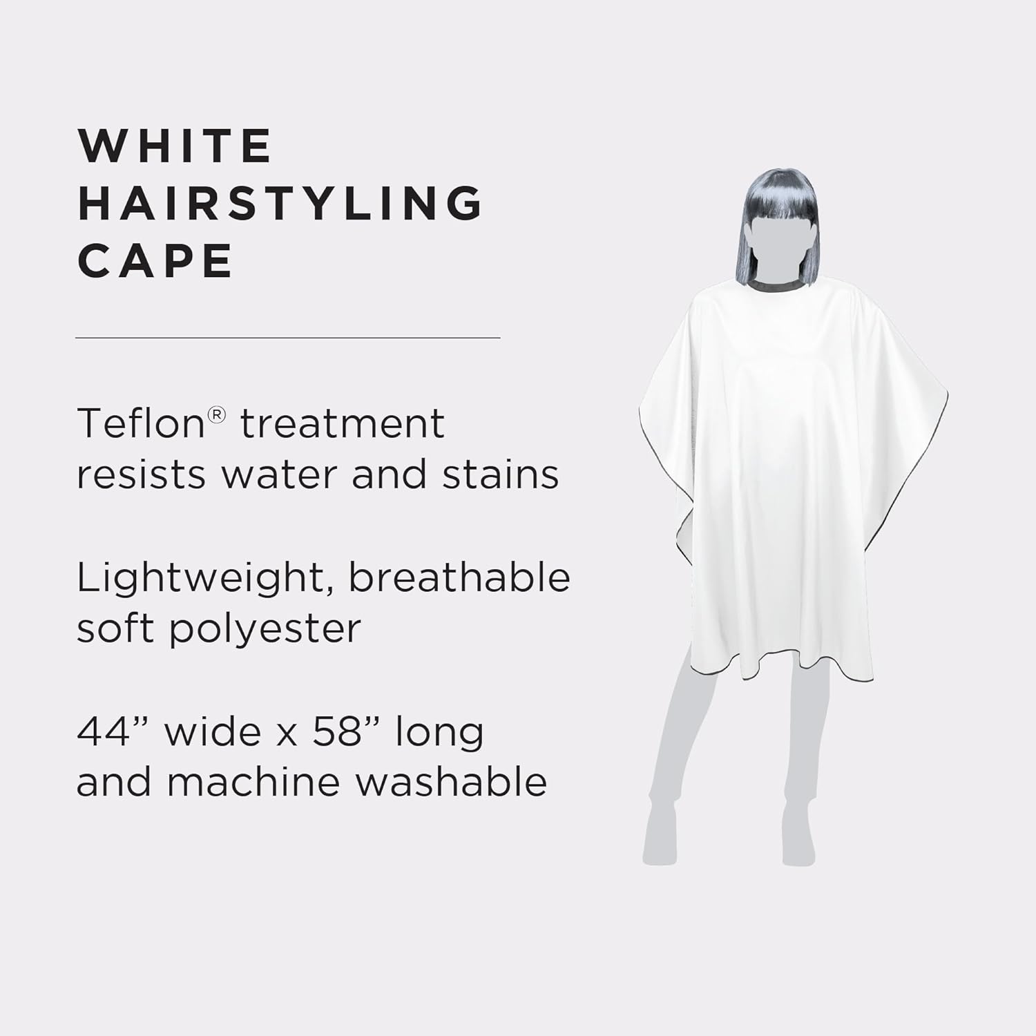 - EVERYDAY PROFESSIONAL CAPE: This Teflon-coated, water repellent, lightweight and breathable hairstyling cape is designed for professional use in a hair salon, barber shop or spa.