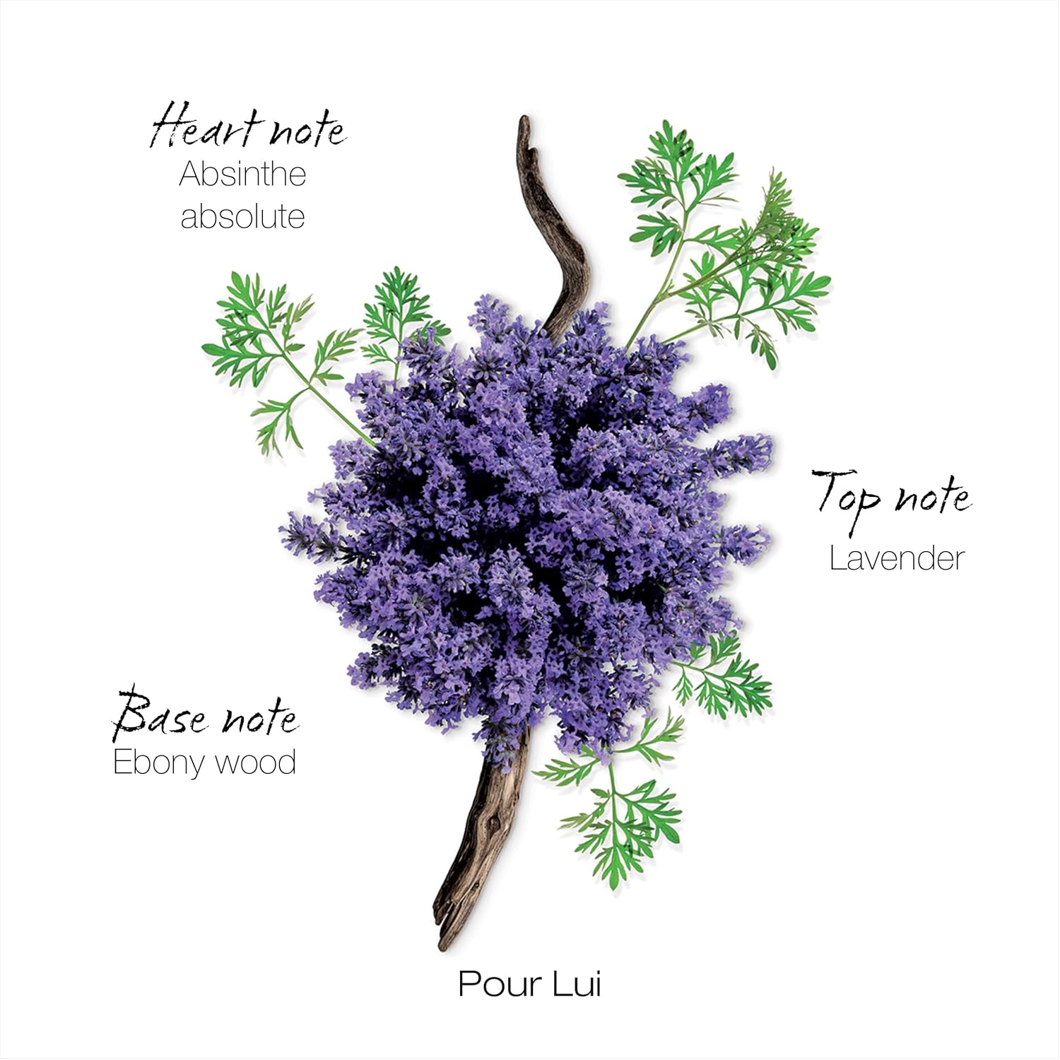 - A CONTRASTED SCENT : A vibrant symphony rich in nuanced notes, where the invigorating fusing lavender, mixed with the power of aniseed absinthe, evolves on a base of amber ebony wood.