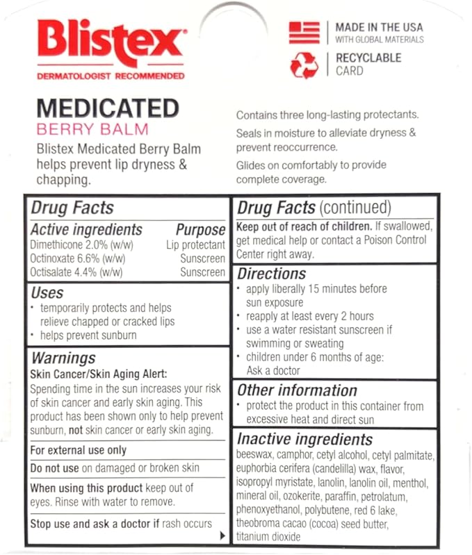 Blistex Medicated Lip Balm, Spf 15, Berry, .15-Ounce Tubes (Pack of 3)