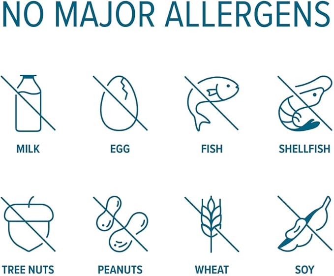 - Free from: Eggs, fish, gluten, GMO, milk, peanuts, shellfish, soy, tree nuts, wheat, artificial colors, artificial flavors, and artificial preservatives