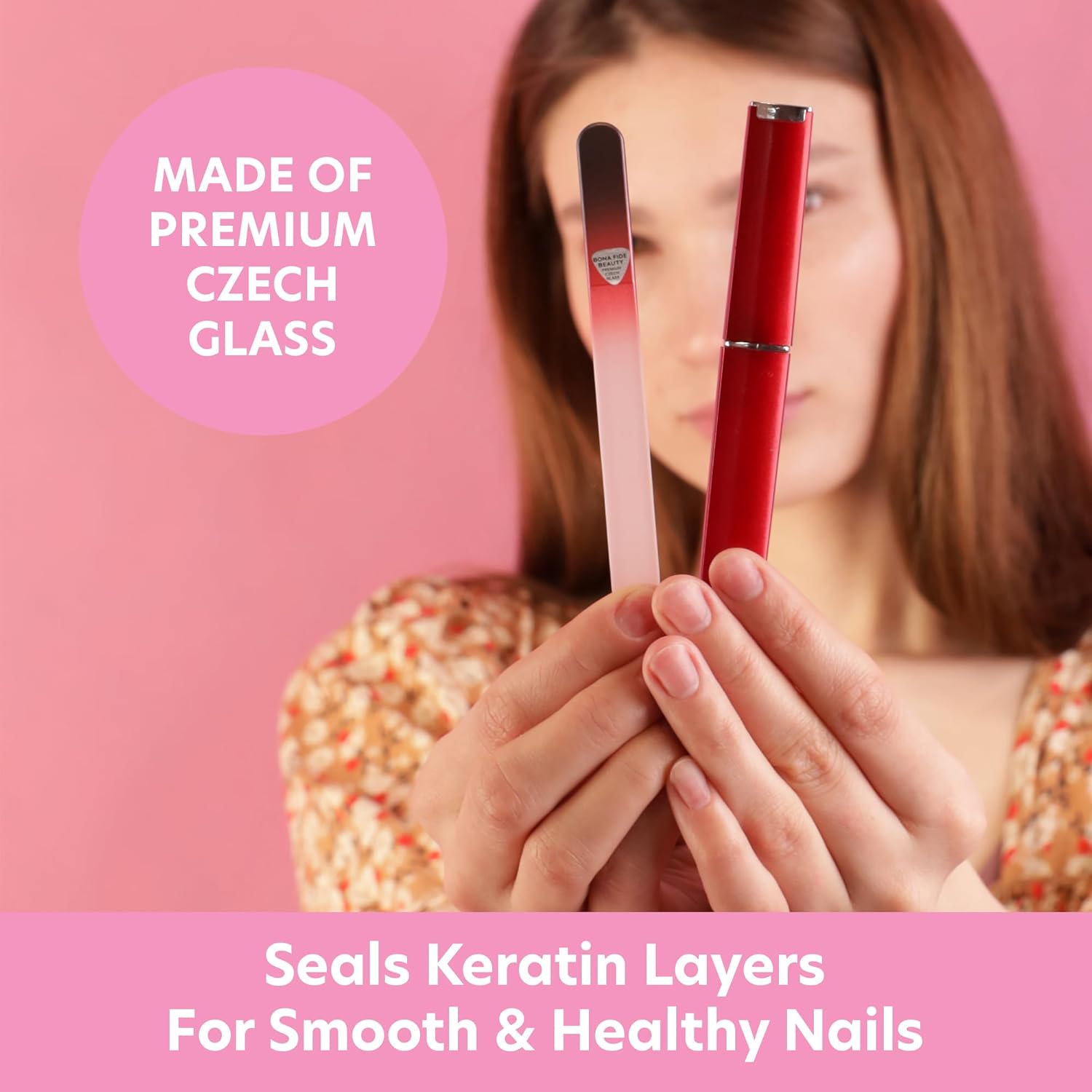 - Smooth and Shape with Glass Nail Filers: forget traditional harmful nail files that tear, shred & damage the keratin layers of your nails. Bona Fide Beauty Czech glass files seal the keratin layers, leavings nails smooth with no jagged edges.