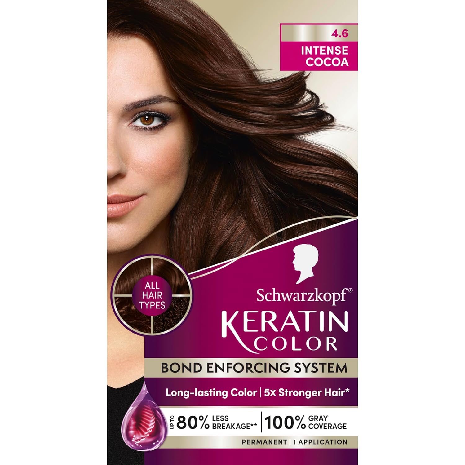 Schwarzkopf Keratin Permanent Hair Dye Cream, 4.6 Intense Cocoa, Professional Quality Color for Up to 100% Gray Coverage, Bond Enforcing System
