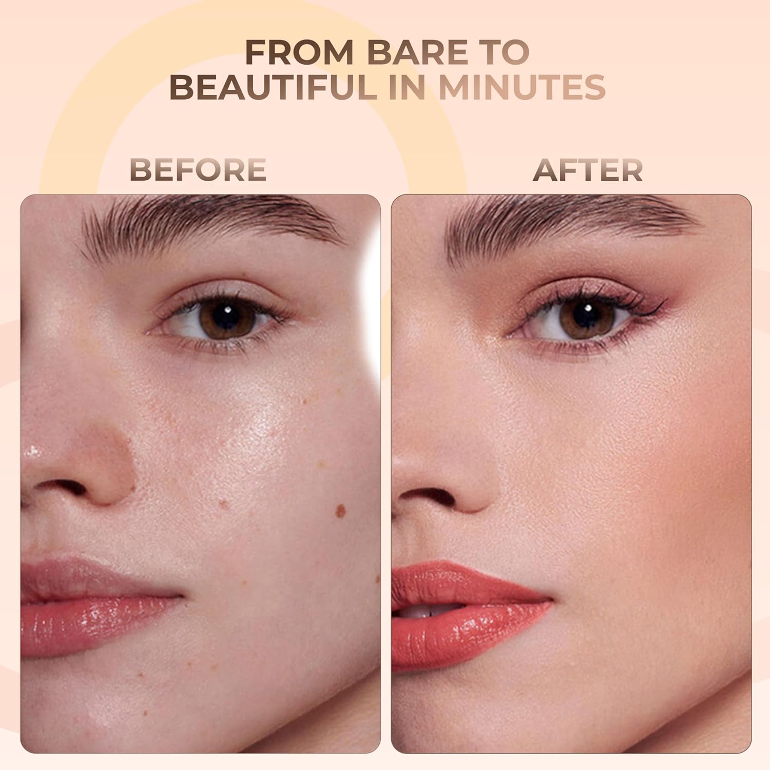 - 【 SUN-KISSED RADIANCE BRONZER 】: Effortlessly achieve a sun-kissed glow with our 2-gram Bronzer. Featuring a natural SPF and a beautiful copper tone, it enhances your complexion while providing soft-focus radiance and protection from harmful UV rays, leaving your skin luminous and safeguarded.