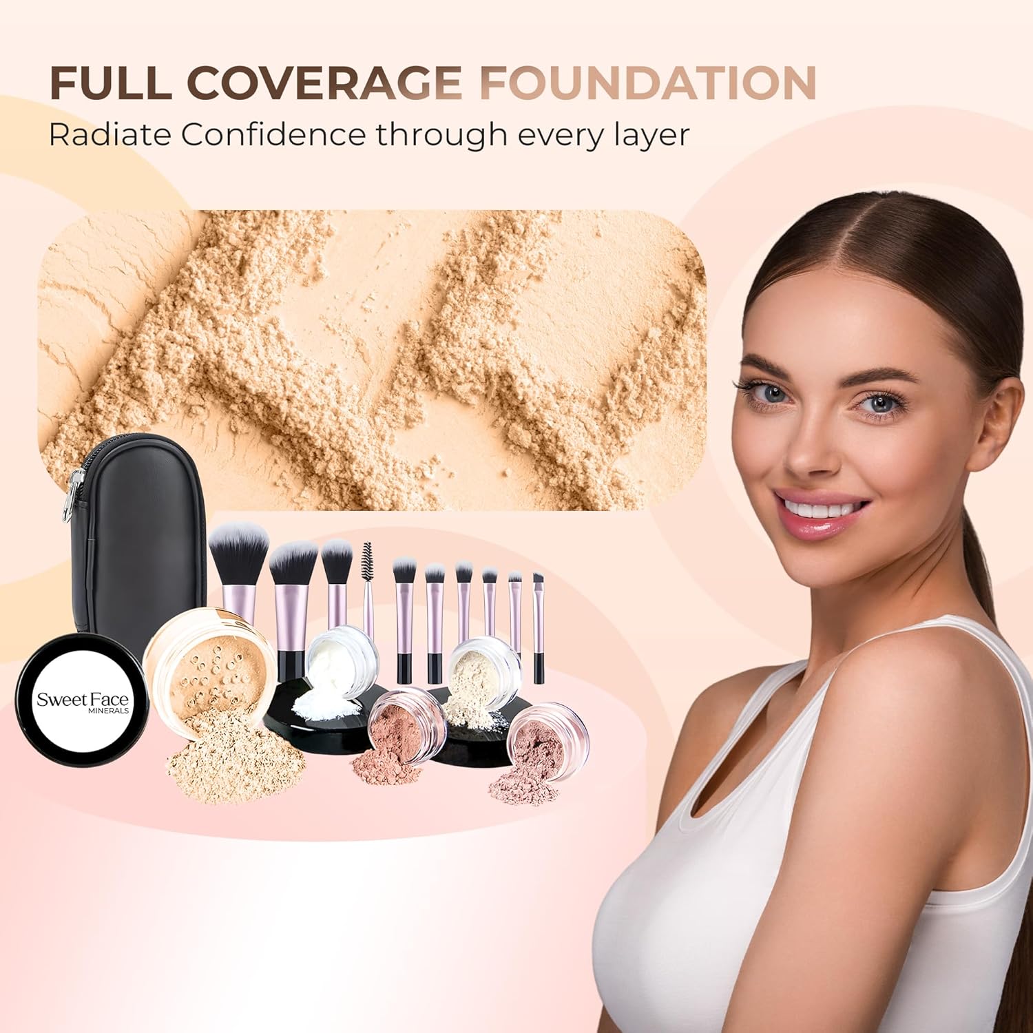 - 【 PERFECTLY SIZED FOR BEGINNERS & TRIAL USE 】: This kit is thoughtfully designed with smaller 5 g jars for blush, bronzer, and finishing powder, and a larger 20 g foundation jar so you can explore and experience Sweet Face Minerals before committing to full-size products. It’s ideal for those new to makeup, learning application techniques, doing makeup occasionally, or needing compact, travel-friendly jars. Please note: these are intentionally smaller starter sizes, not full-size products.