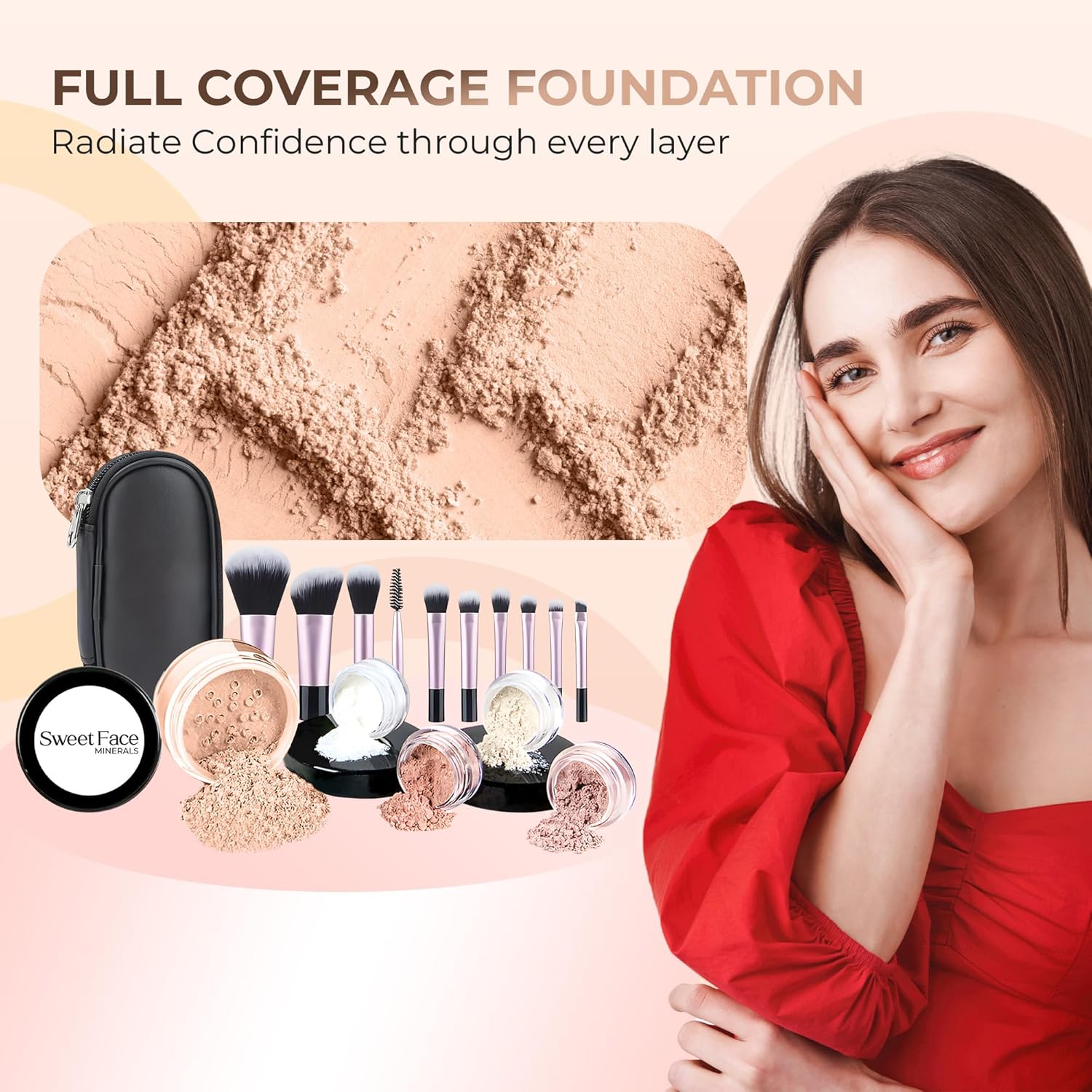 - 【 PERFECTLY SIZED FOR BEGINNERS & TRIAL USE 】: This kit is thoughtfully designed with smaller 5 g jars for blush, bronzer, and finishing powder, and a larger 20 g foundation jar so you can explore and experience Sweet Face Minerals before committing to full-size products. It’s ideal for those new to makeup, learning application techniques, doing makeup occasionally, or needing compact, travel-friendly jars. Please note: these are intentionally smaller starter sizes, not full-size products.