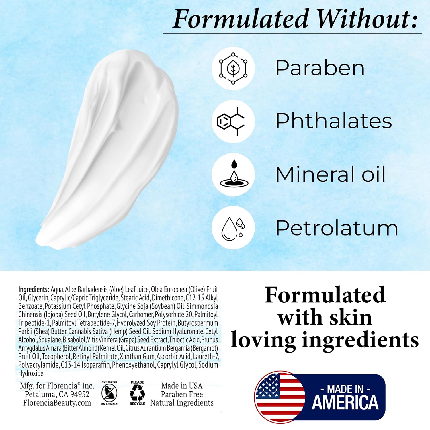 - NATURAL, SAFE, EFFECTIVE SKINCARE – Our facial moisturizer made in USA with the best plant-based ingredients to ensure you have the best experience. Hypoallergenic Formula, Cruelty Free, No Paraben, Mineral Oil Free.