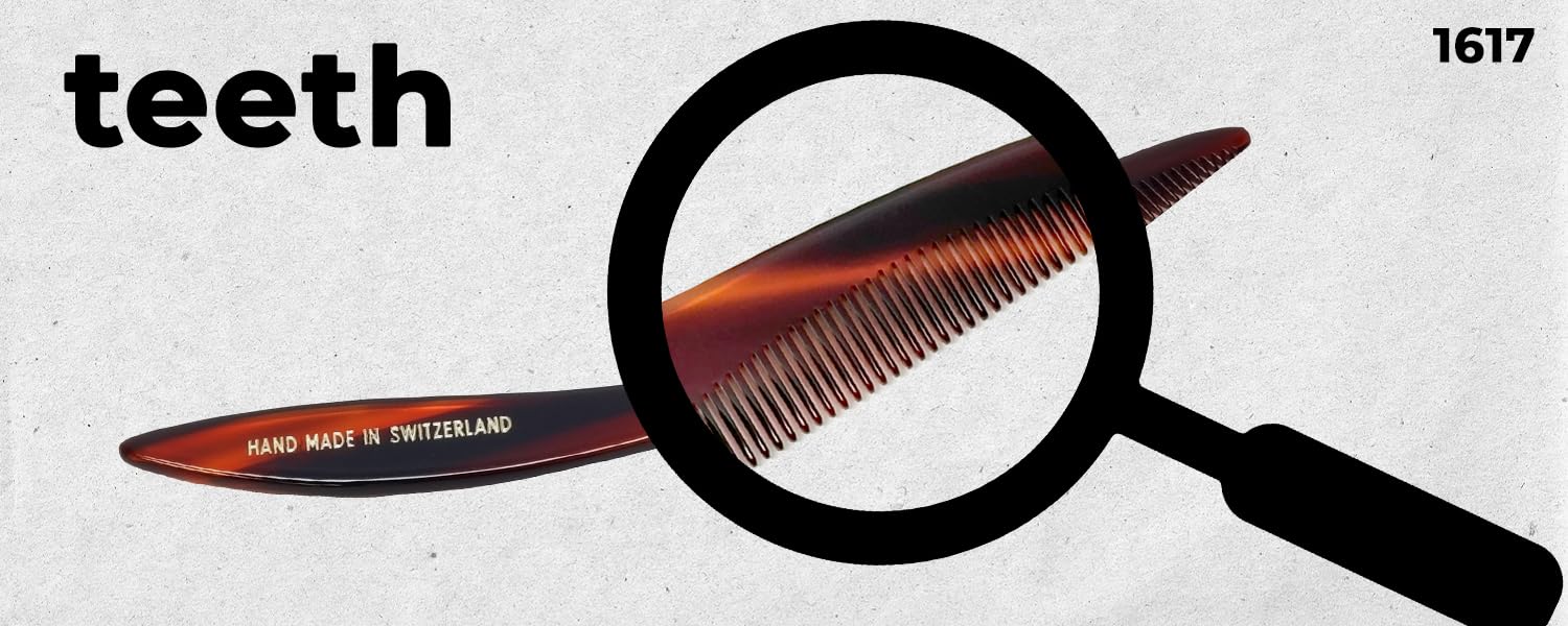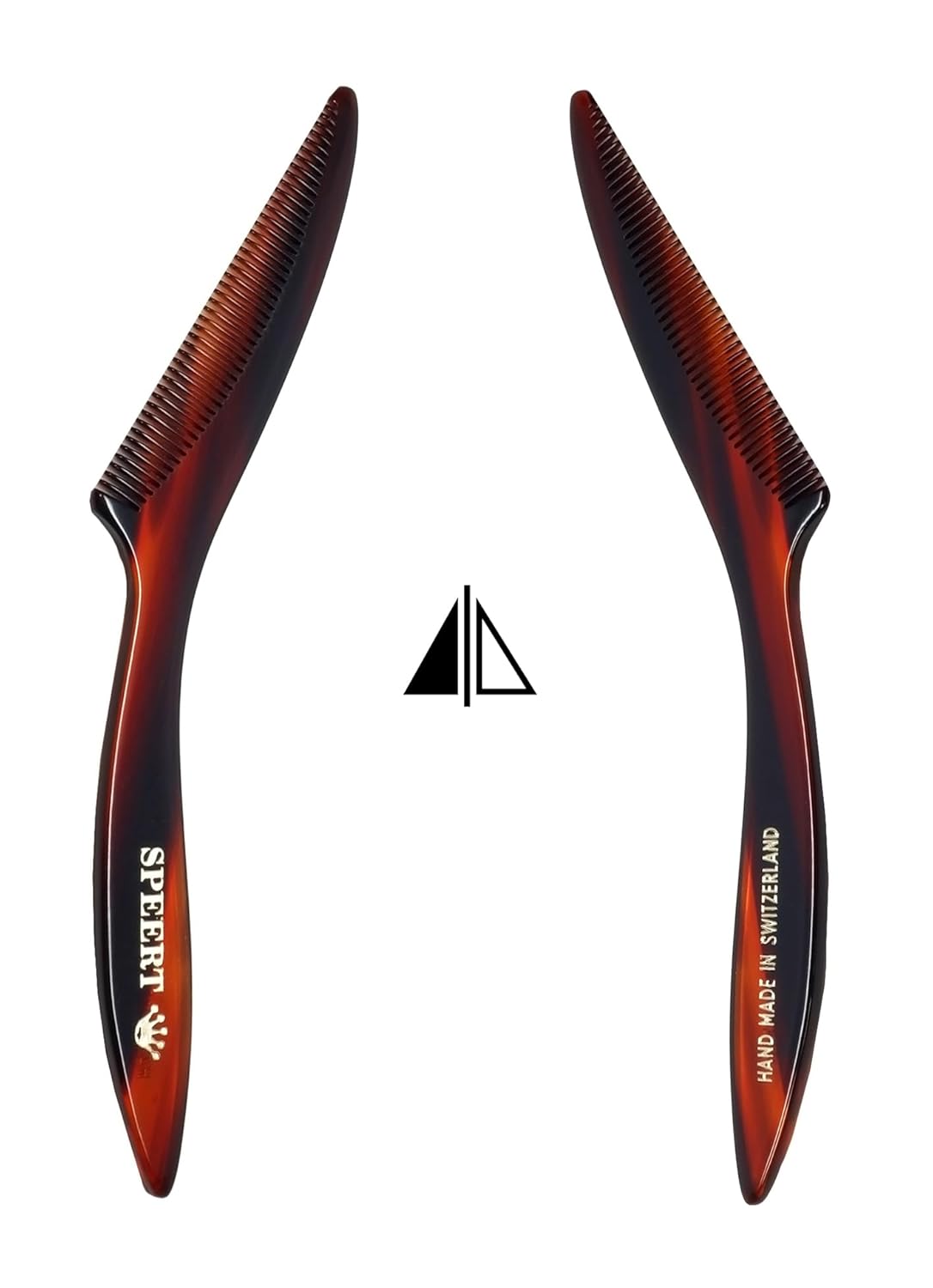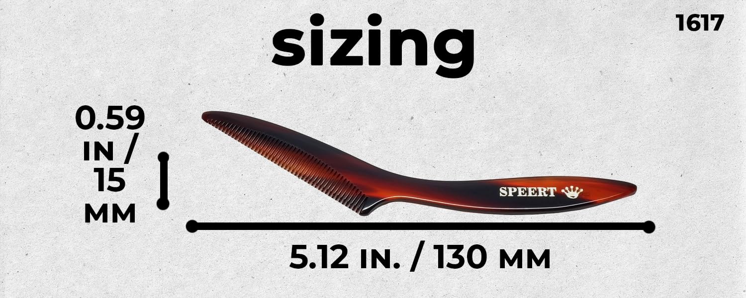 - Swiss Craftsmanship: Handcrafted in Switzerland, our Speert European comb is a masterpiece of design and functionality, constructed from premium cellulose acetate for unparalleled durability and flexibility. This carefully selected material ensures a smooth, seamless glide through all types of facial hair, providing a grooming experience free from static or snags. This comb respects the skin and scalp, promoting a healthy grooming routine. Measures: 5.12" x 0.59" x 0.08" (130 x 15 x 2 MM)