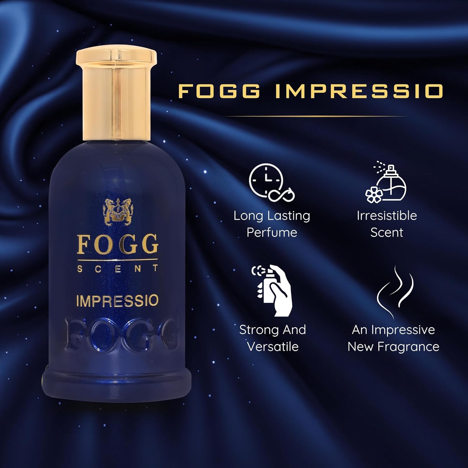 - IRRESISTIBLE SCENT - With a harmonious blend of alluring and distinctive fragrances, Fogg Impressio men's perfume will surely help you leave a lasting impression wherever you go. Prepare to be captivated by its irresistible scent, which leaves everyone impressed.