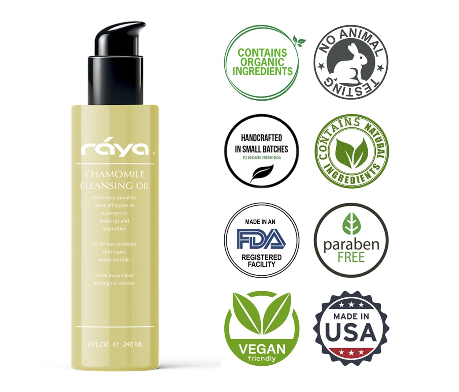 Raya Chamomile Facial Cleansing Oil (154) | Natural and Organic, Water-Soluble Oil Cleanser and Water-Proof Make-Up Remover For All Skin | Made With Chamomile and Lavender Oils
