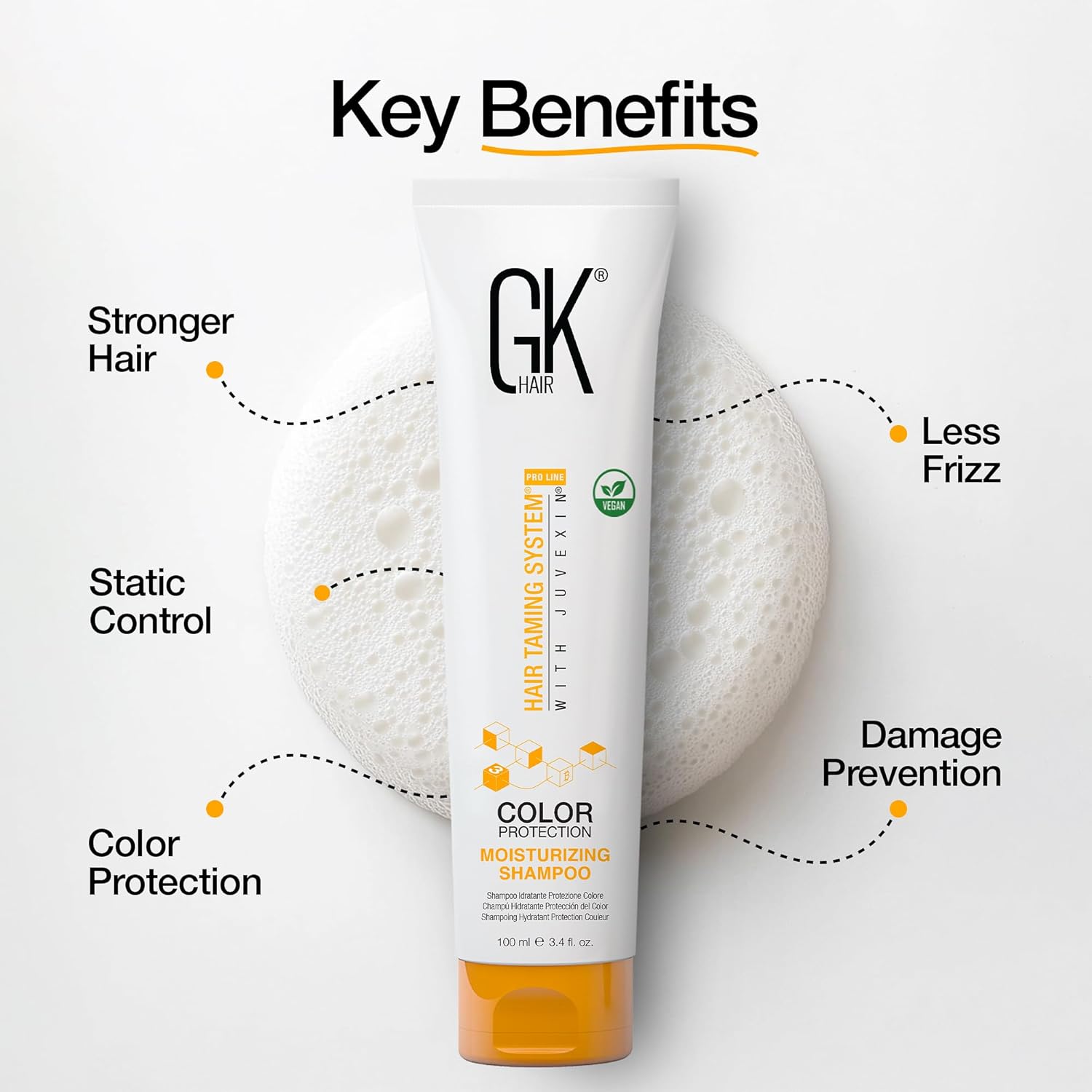 GK HAIR Global Keratin Moisturizing Shampoo (3.4 Fl Oz/100ml) for Hydrating Color Protection Dry Damage Curly Frizzy Thinning Color Treated Hair Repair Organic Paraben Sulfate Free All Hair Types