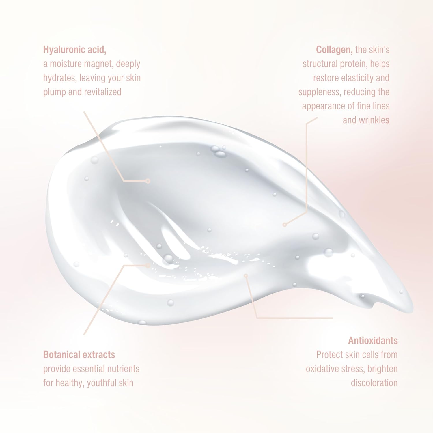 - PREMIUM INGREDIENTS: This non-greasy formula penetrates deeply with a potent blend of active ingredients, including collagen, hyaluronic acid, and botanical extracts, deeply hydrating your skin while protecting it from environmental stressors.