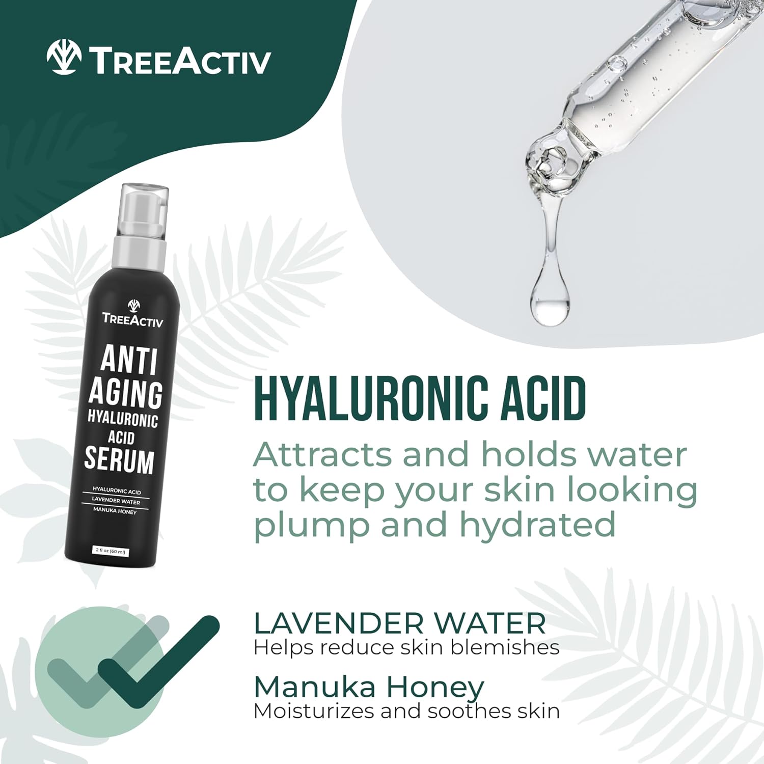 Anti-Aging Hyaluronic Acid Serum for Face 2 oz, Hydrating Wrinkle Repair for Skin Care, Pure Hyaluronic Acid Face Serum for Women, Oil-Free Anti-Aging for Advanced Skin Repair TreeActiv