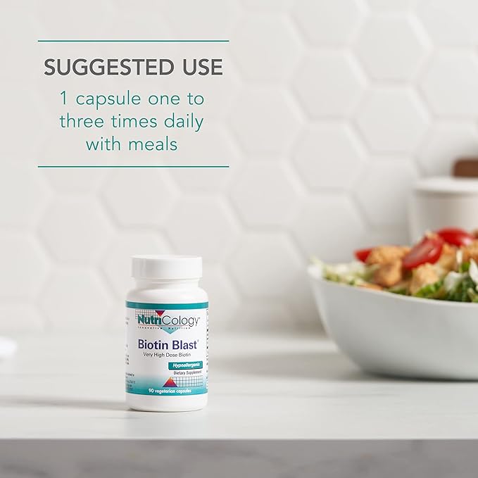 Nutricology HiBiotin Supplement - Extra Strength Biotin Pills, 100,000mcg Biotin, High Dose Biotin, Vegetarian Capsules, Hypoallergenic, Gluten Free - 90 Count