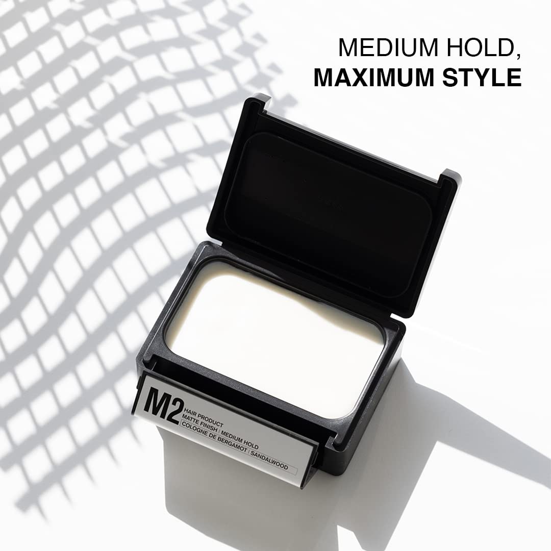 - MATTE POMADE: M2 is our medium hold styling product. It's a matte finish, medium hold hair styling product that contains active ingredients that instantly swell the hair shaft without weighing it down. Ideal for the effortless or natural hair style look.