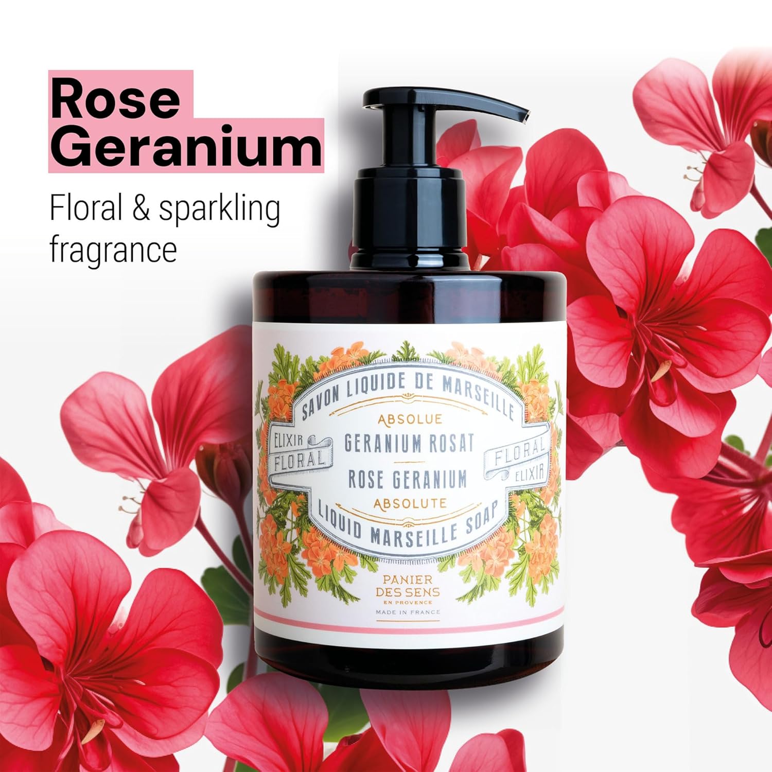 Panier des Sens - Moisturizing Hand Soap - Rose Geranium Fragrance - French Traditional Savon de Marseille Soap - Refillable Kitchen & Bathroom Soap - 16.9 Fl.oz Liquid Hand Wash 96% Natural
