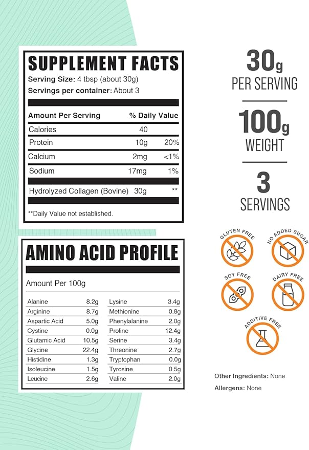 BulkSupplements.com Collagen Peptides Powder - Bovine Collagen Powder, Powdered Collagen Supplement - Hydrolyzed & Gluten Free, 30g per Serving, 100g (3.5 oz) (Pack of 1)