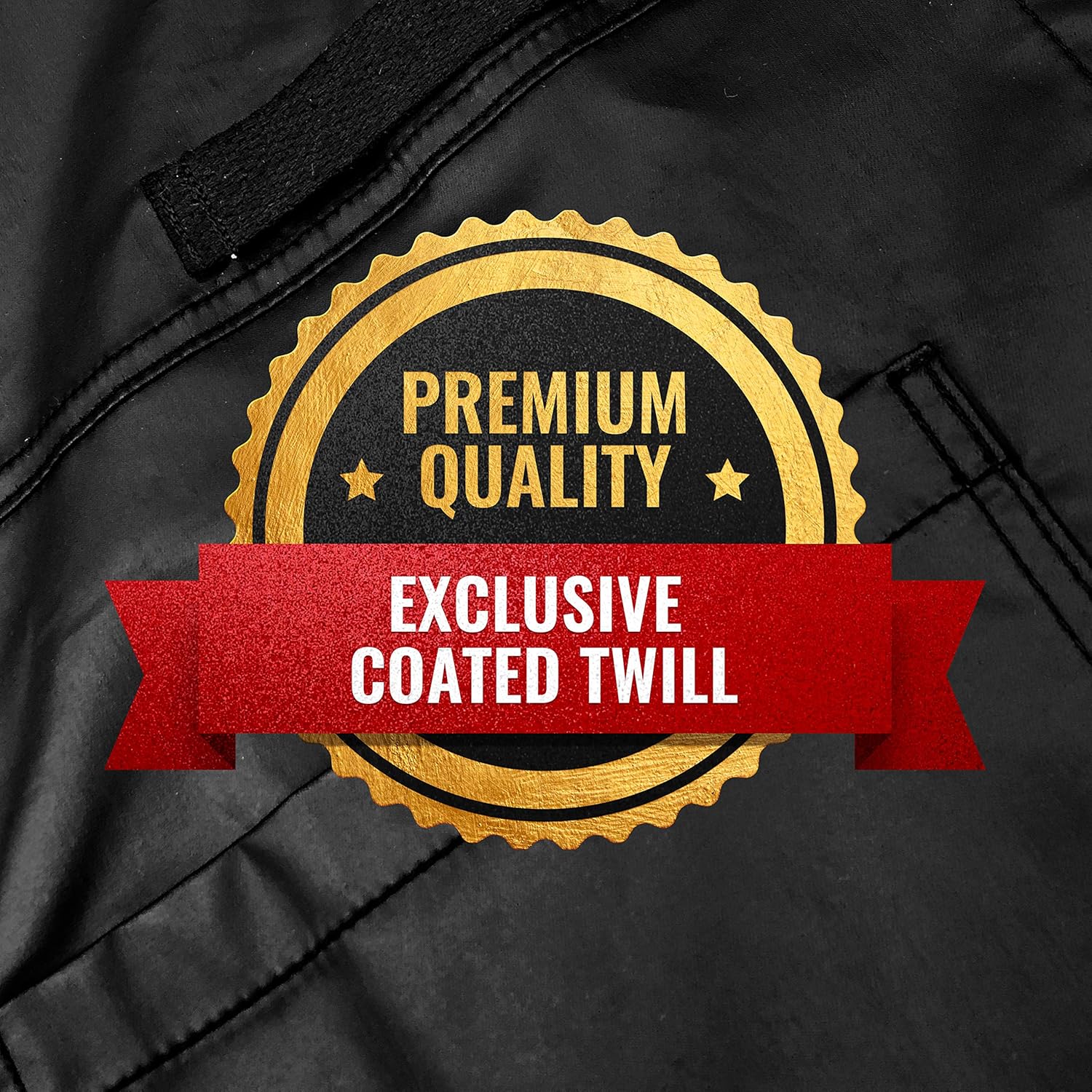 Under NY Sky No-Tie Panther Black Apron – Coated Twill with Leather Reinforcement, Split-Leg, Adjustable for Men and Women – Pro Barber, Tattoo, Barista, Bartender, Hair Stylist, Server Aprons