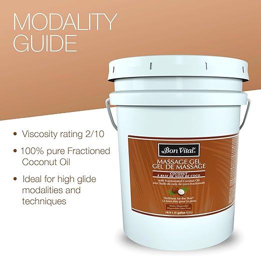 Bon Vital' Coconut Massage Gel with 100% Pure Fractionated Coconut Oil, Great for At-Home Use in Back Massages & Neck Massages, Moisturizes Skin Without Clogging Pores, 5 Gal, Label may Vary