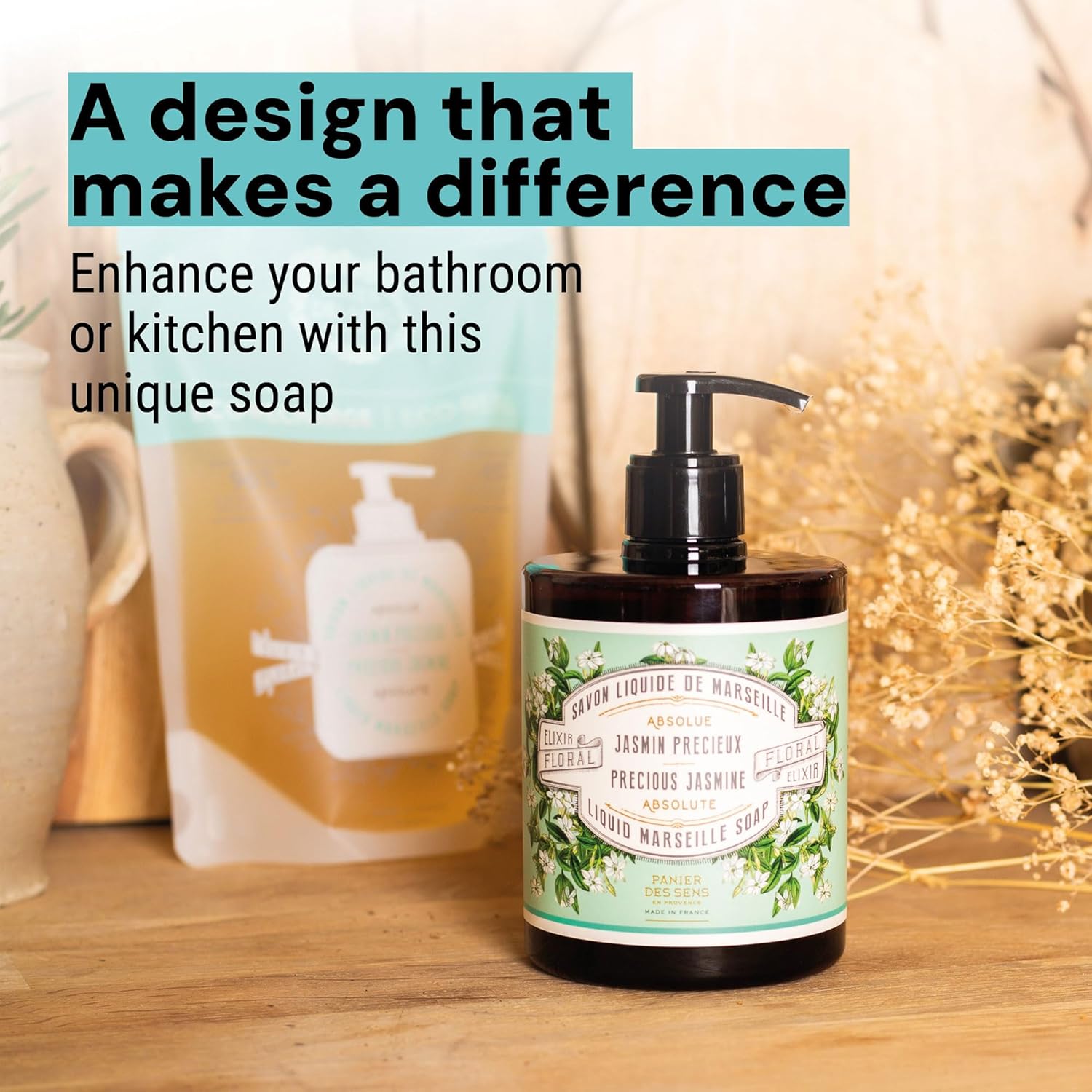 - PANIER DES SENS LUXURY LIQUID SOAP - Inspired by Mediterranean botanicals, our French-made liquid soap is crafted with at least 95% natural ingredients. Vegan, refillable, and presented in elegant recycled & recyclable packaging. A blend of luxury and sustainability.
