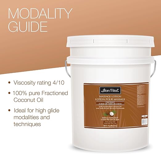 Bon Vital' Coconut Massage Lotion with 100% Pure Fractionated Coconut Oil, Lightweight Massage Lotion, Provides a Massage with Intense Skin Hydrating and Moisturizing, 5 Gal, Label may Vary
