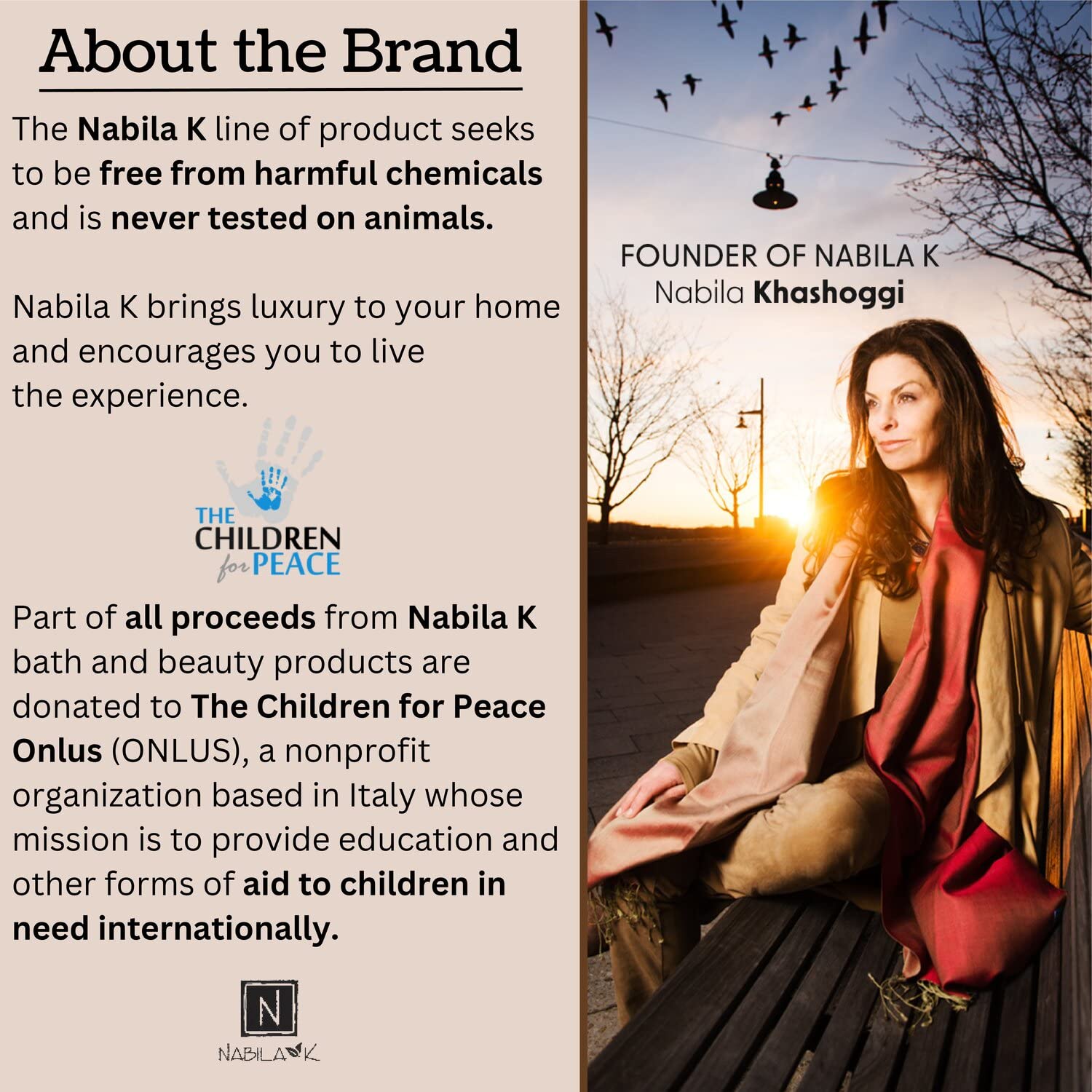 - All Nabila K products are plant and mineral-based, cruelty-free, and ethically sourced. Our healthy and natural products are made with the finest ingredients inspired by the Mediterranean to enrich your daily life with luxury. Sized with travel in mind, take Nabila K products with you everywhere you go! Made in the USA.
