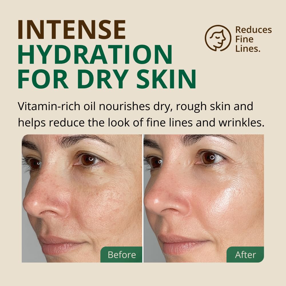 - Softens Parched Skin: Vitamin-rich oil helps to nourish and hydrate dry, rough skin on the face and body. Helps combat moisture loss and minimize the appearance of fine lines & wrinkles.