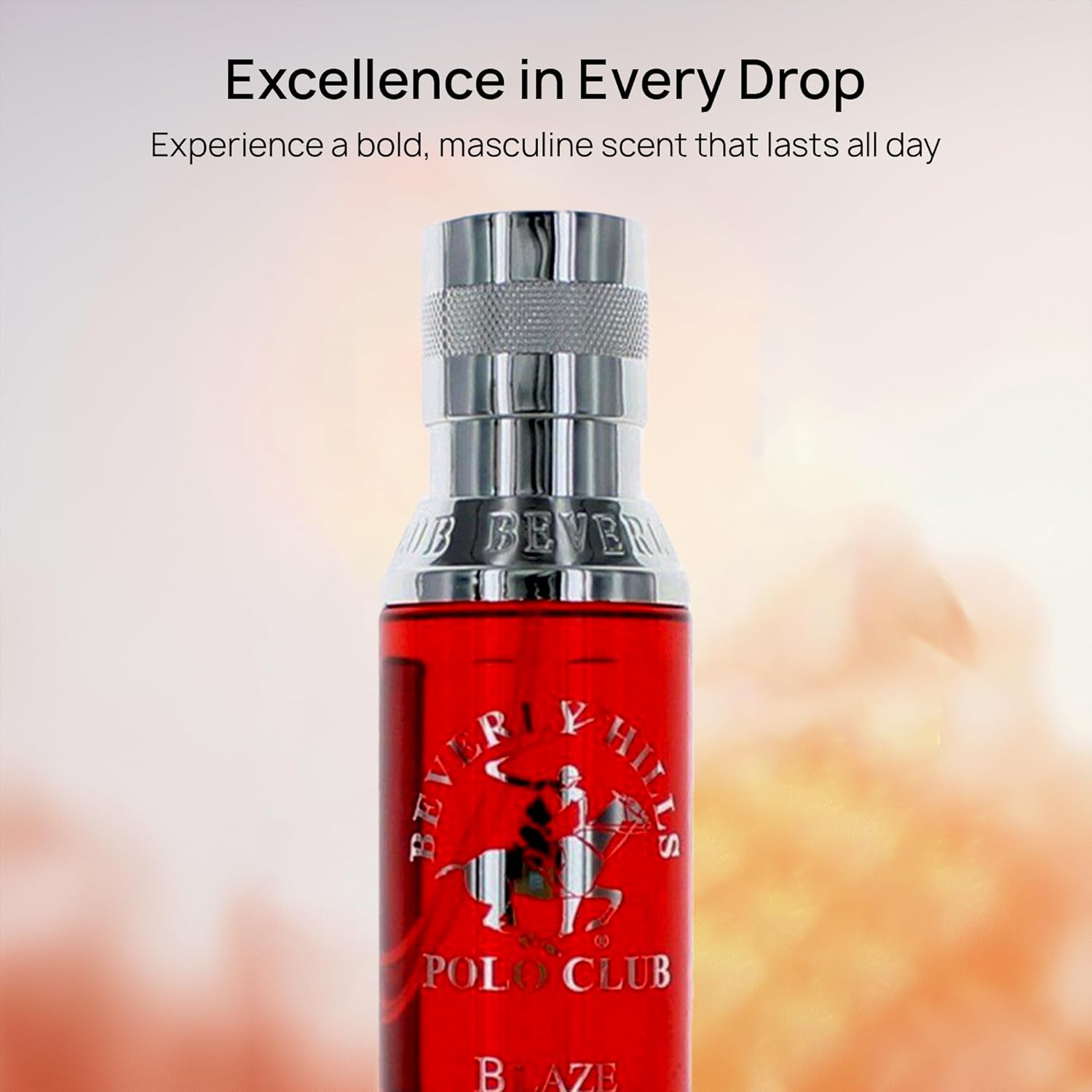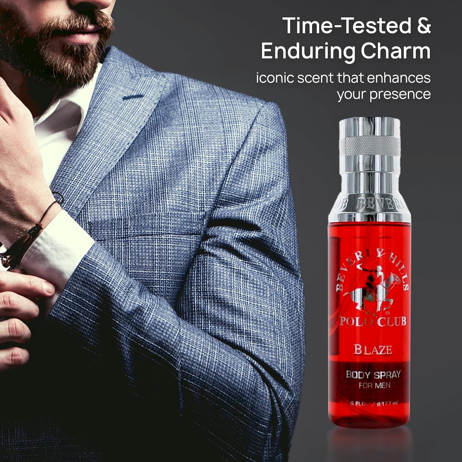 Beverly Hills Polo Club Body Spray for Men - BHPC Blaze - Fresh, Earthy with Notes of Cedar & Basil - Long Lasting Body Mist Cologne Scent - Ideal Gift for Him, 6oz