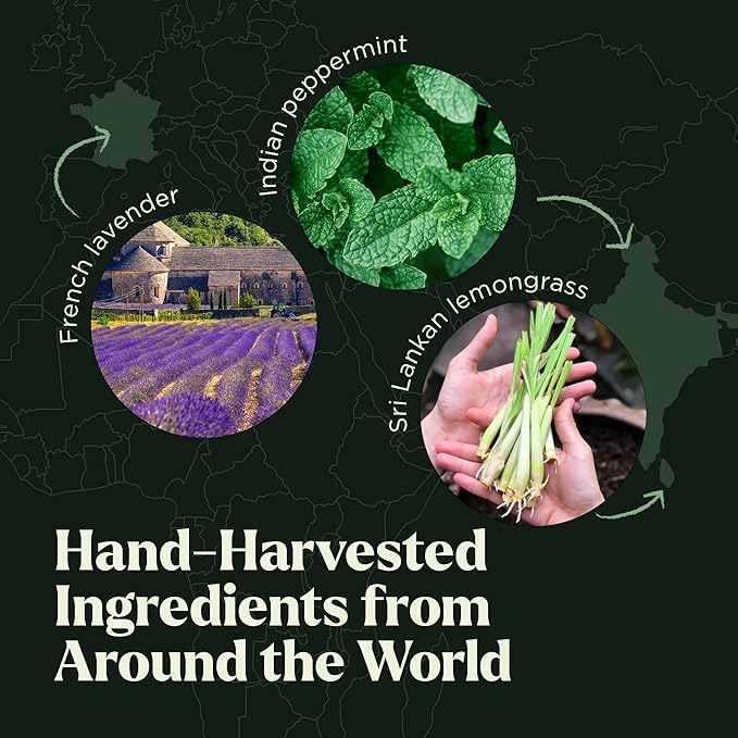 - Plant-powered ingredients from around the world: Our team brings you the purest tea tree essential oil from Australia, eucalyptus from China, lavender from France, orange oil from Brazil, and peppermint and lemongrass from India.