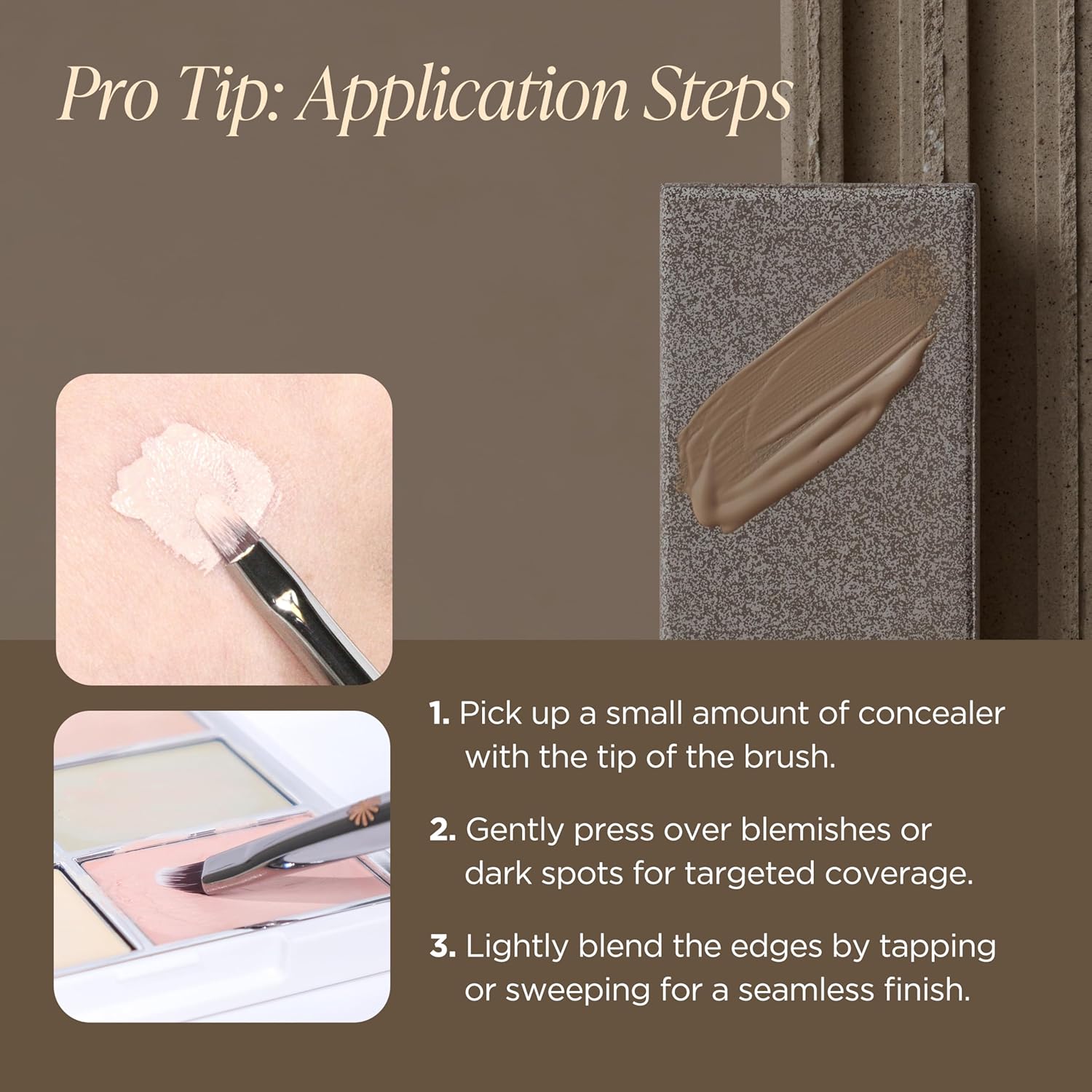 - Ultra-Fine Concealer Brush for Spot Correction This concealer brush features a flat, sharp-edged tip that precisely covers blemishes and imperfections with a small amount of cream or liquid concealer