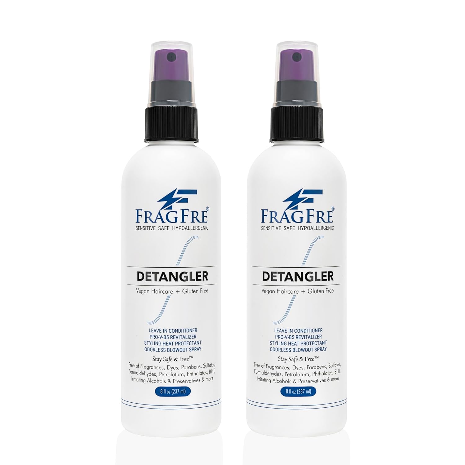Detangler 8 oz (2-Pack Gift Set) - Fragrance Free Hypoallergenic Parabens Free - Hair Detangler Leave-in Conditioner for Sensitive Skin - Styling Heat Protectant - Vegan Cruelty/Gluten Free