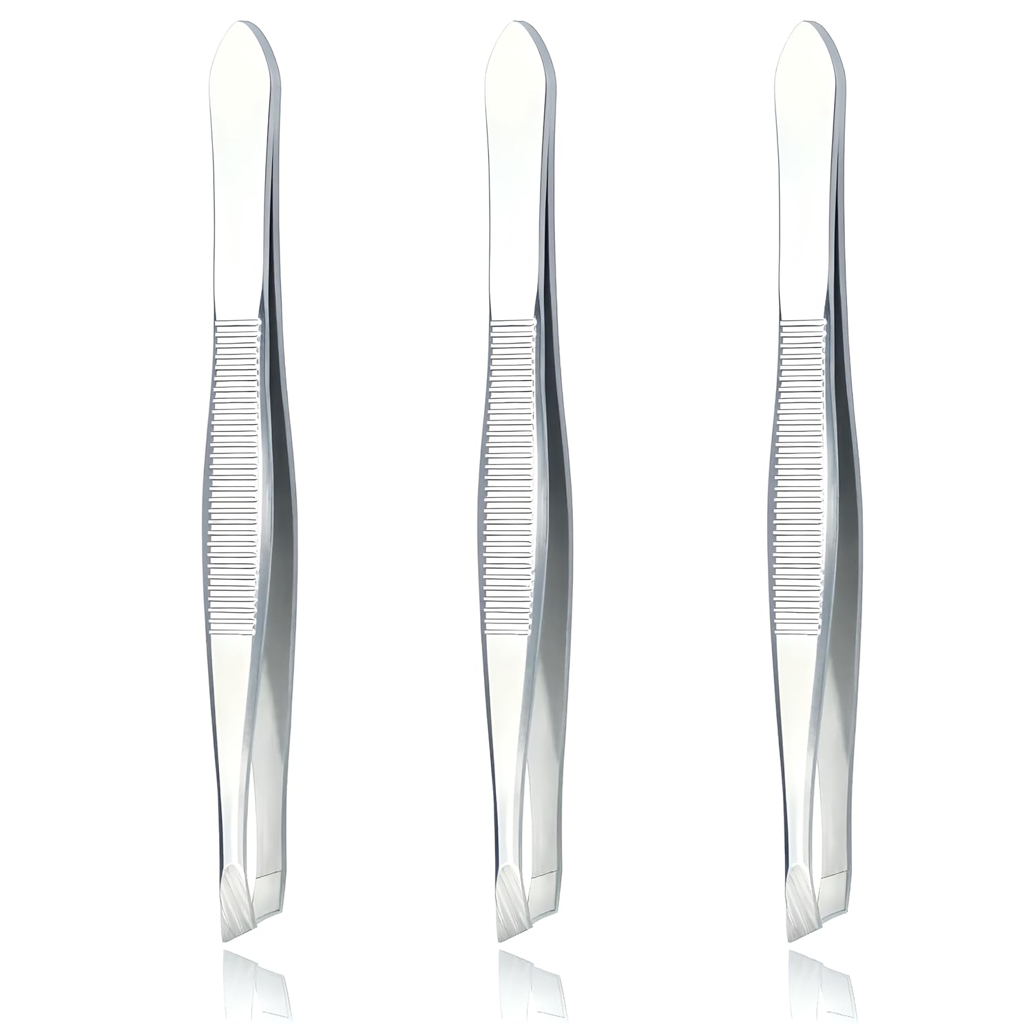 (3 Pack) Slant Tweezers - Precision Stainless Steel Slant Tip Tweezers Hair Plucker for Hair and Eyebrows Personal Care (Silver Tone)