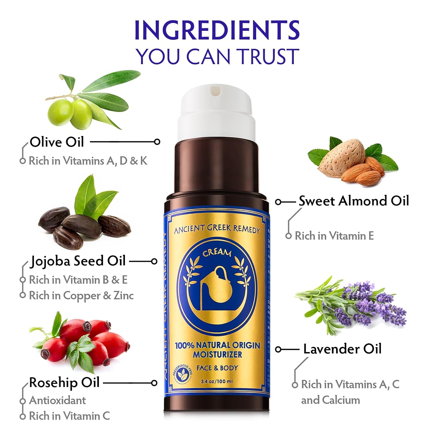Organic Anti Aging Face and Body Butter Cream for Dry Skin, Hair, Hands, Cuticle, Nails. Made of Almond, Olive, Jojoba, Rosehip, Vitamin E, Lavender oil. Day and Night Moisturizer for Women, Men