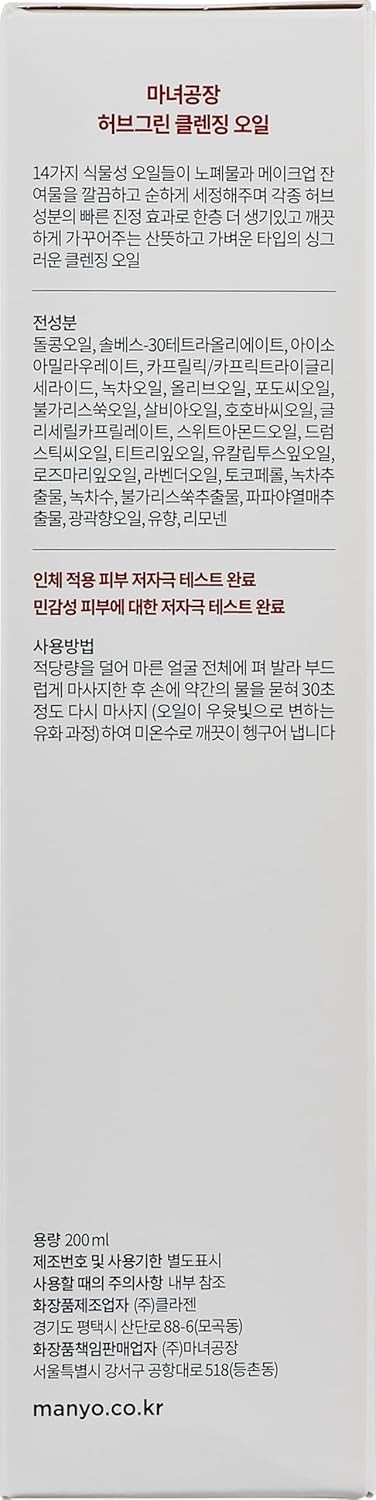 ma:nyo Herb Green Cleansing Oil, Gentle Makeup Remover with Natural Herbal Extracts, Artemisa, Tea Tree, Deep Cleansing & Hydrating, Suitable for All Skin Types, Korean Skincare 6.7 fl oz (200ml)
