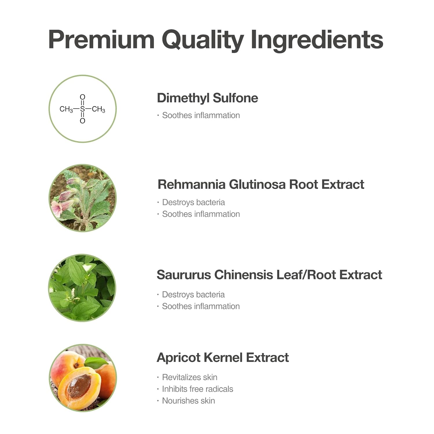- Soothing & Anti-Inflammatory – Enriched with dimethyl sulfone and houttuynia extract to calm redness and help reduce breakouts.