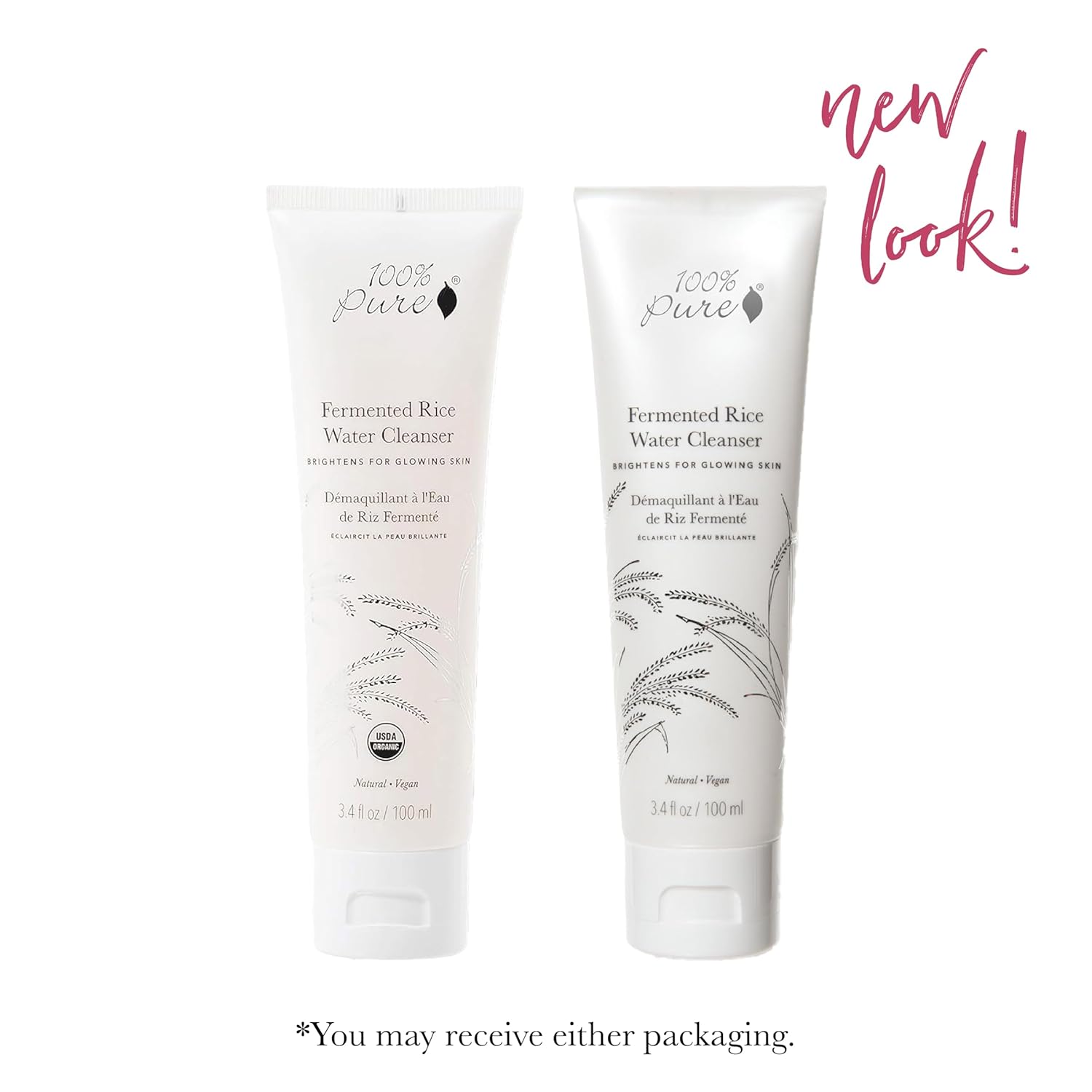 100% PURE Fermented Rice Water Cleanser, Face Wash, Skin Care For All Skin Types, Daily Makeup Remover, Natural Face Wash for Clear Skin - 3.4 Fl Oz