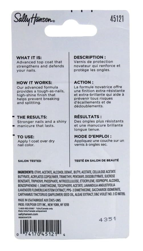 - HOW TO USE - Apply 1 coat over dry nail color to seal and strengthen