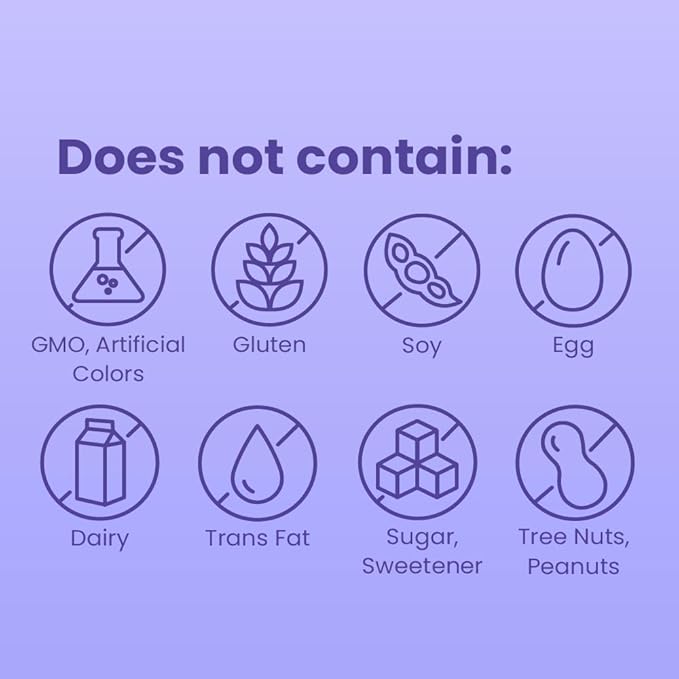 - THIS SUPPLEMENT EXCLUDES: GMO, Artificial Colors, Gluten, Soy, Egg, Dairy, Trans Fat, Sugar, Sweeteners, Tree Nuts, and Peanuts.