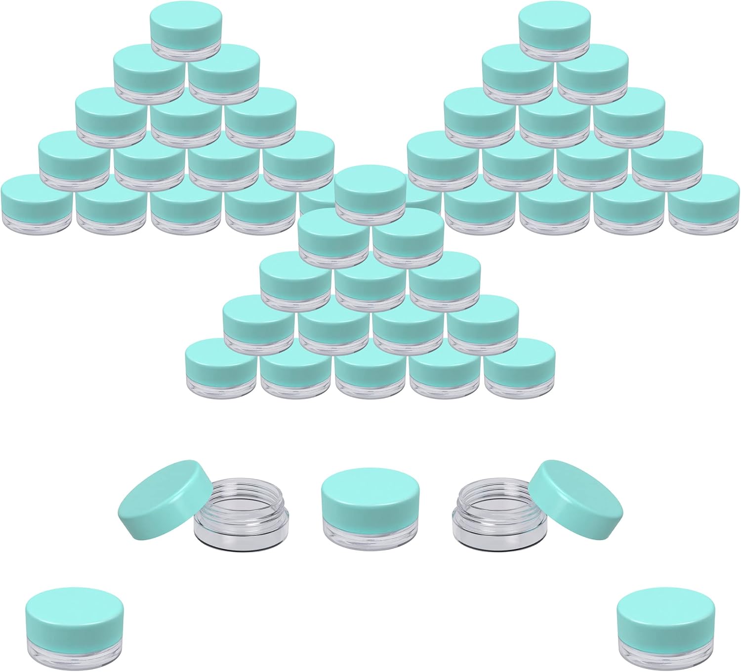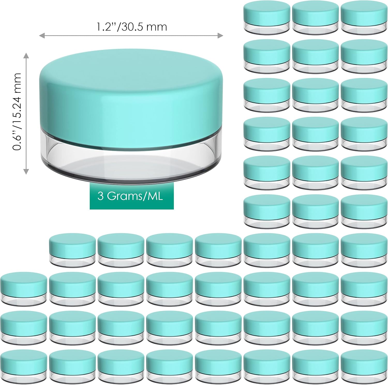 Houseables Sample Containers, Lip Balm Containers, Sample Jars, Mini Jars with Lids, Small, Empty, Makeup, Powder, Gloss, Cosmetic, Tiny, Chapstick, Dab, Wax, Scrub, Little, Blue Plastic, 3 Gram, 50PK