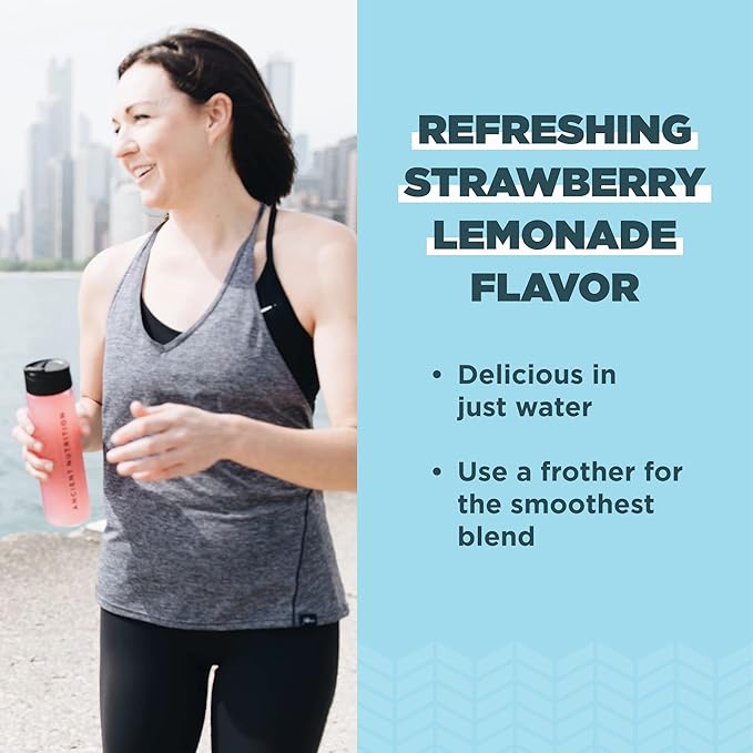 Ancient Nutrition Hydrolyzed Collagen Peptides Powder with Probiotics, Strawberry Lemonade Multi Collagen Protein for Women and Men with Vitamin C, 45 Servings, Supports Skin and Nails, Gut Health, 18