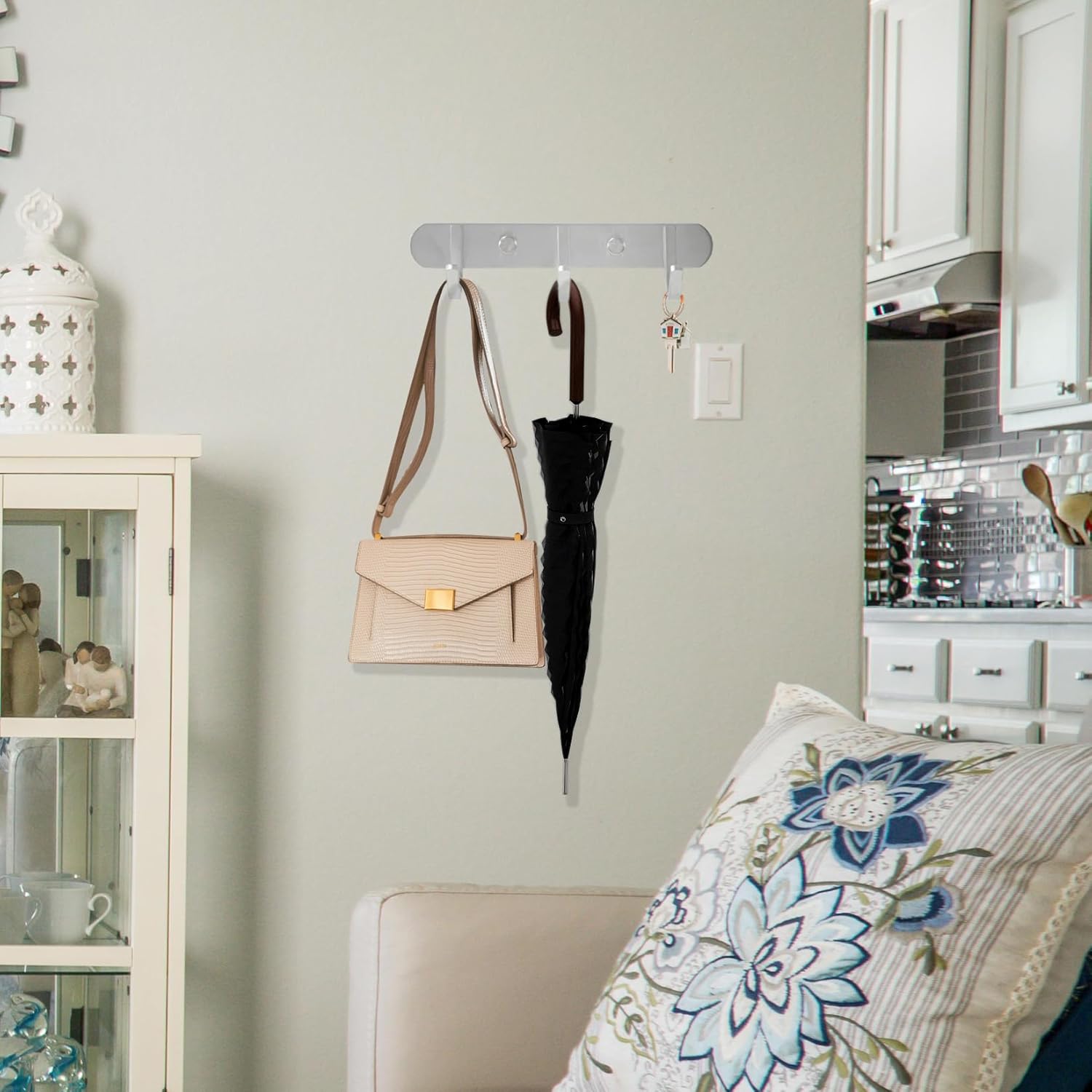 Coat Hook Rack Brushed Nickel 8-Inch Coat&Towel Hook Rail Wall Mounted with 3 Hooks, Durable Wall Hangers for Bedroom, Bathroom, Foyer, Hallway (SUS304 Stainless Steel)