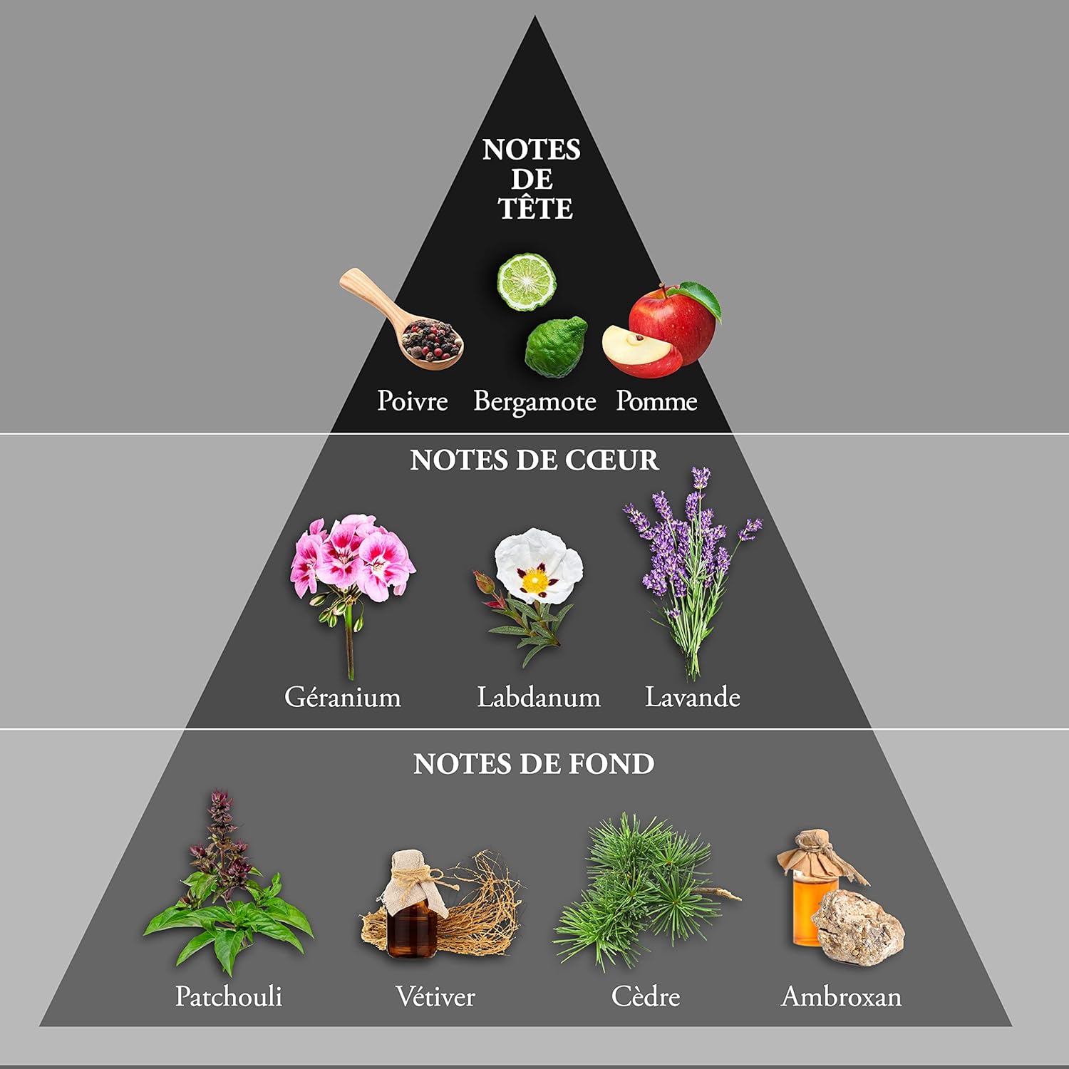 - DEEP & WOODY BASE – Patchouli, Ambroxan, Vetiver, and Cedar bring warmth, strength, and long-lasting power.