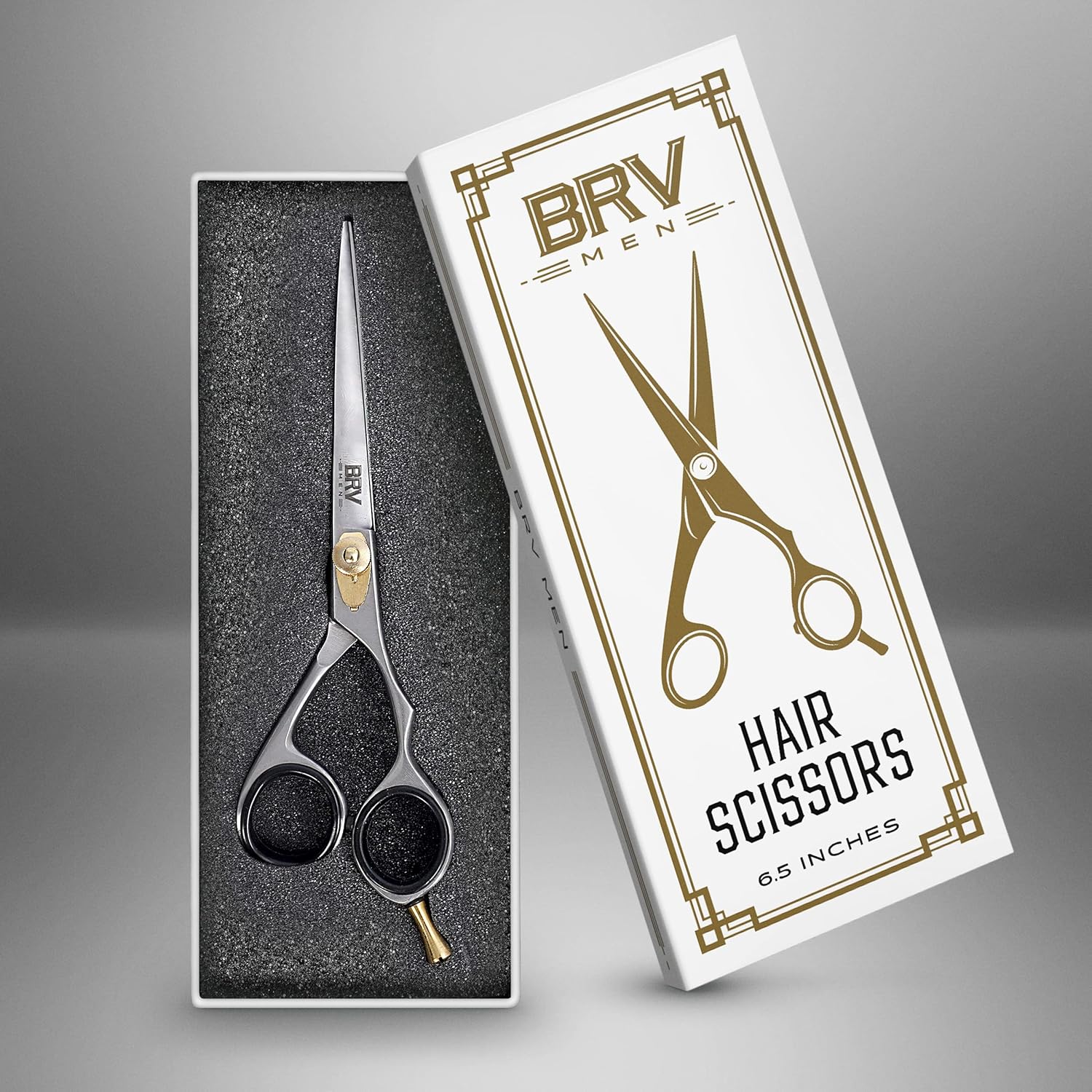 - RAZOR SHARP - Hammer forged hair cutting scissors comes with hand sharpened razor blades to cut at a single stroke. BRV MEN scissors are made to last a lifetime
