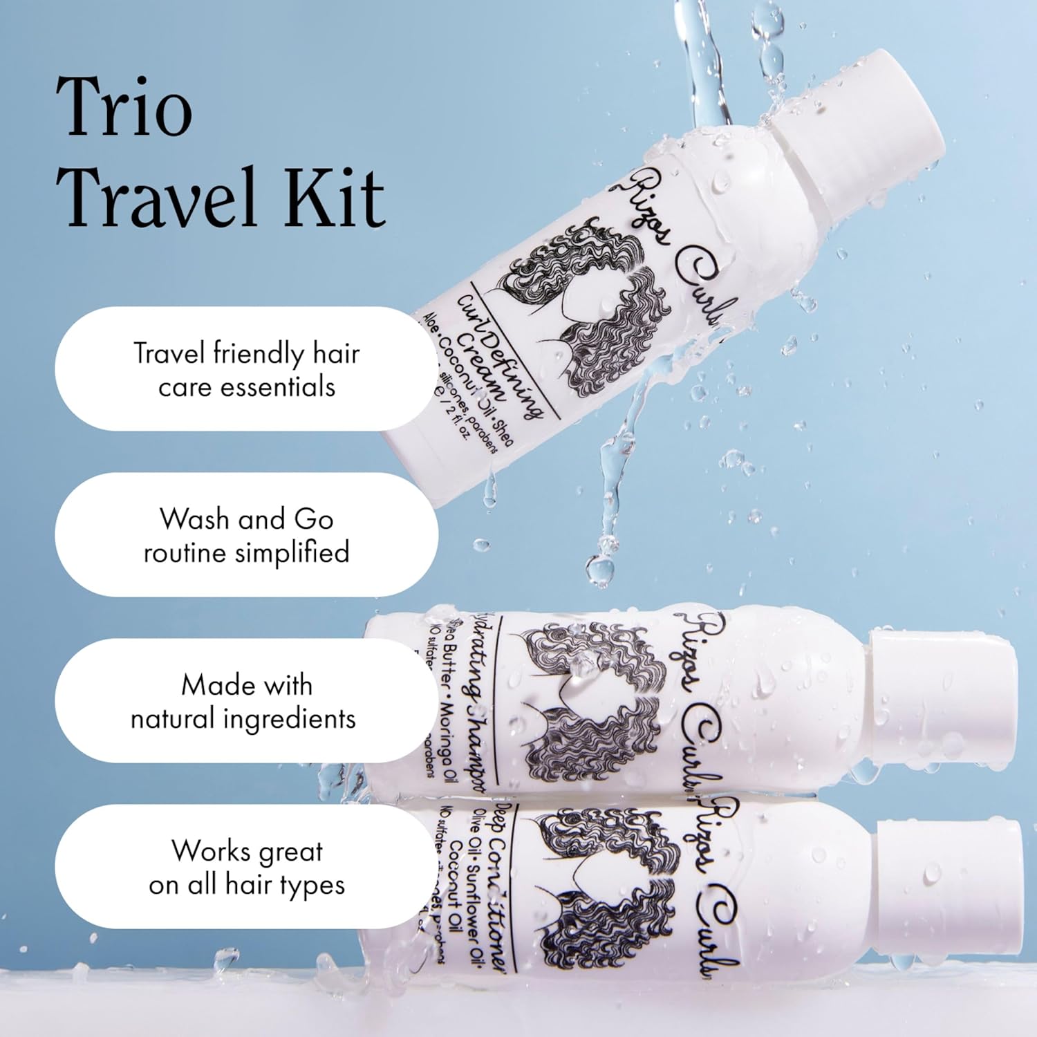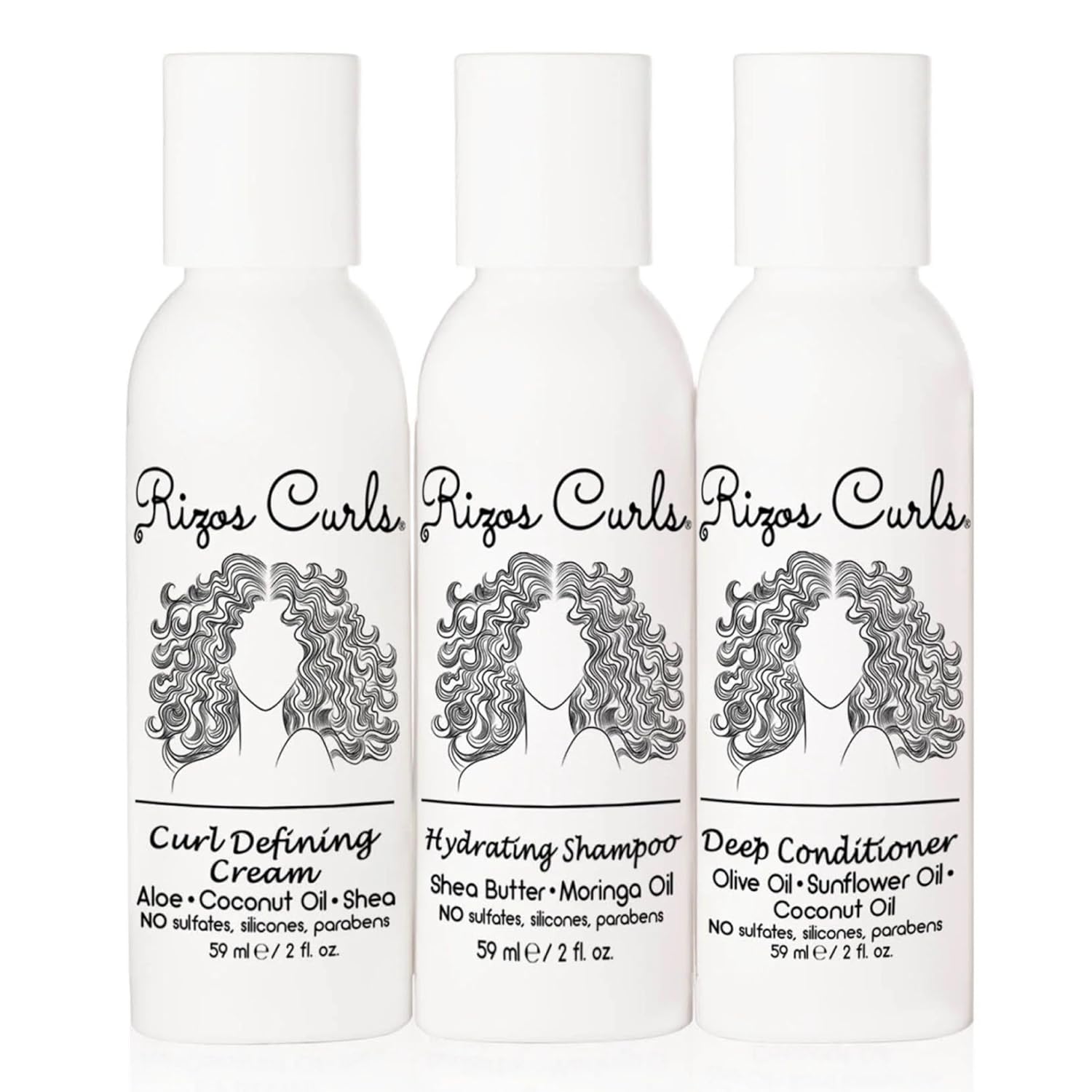 Rizos Curls Trio Travel Curl Kit, Includes Travel Hydrating Shampoo, Travel Deep Conditioner, Travel Curl Cream, Gently Cleanse, Hydrate and Style, For All Curl Patterns 2a - 4c, 3 pack of 2 oz